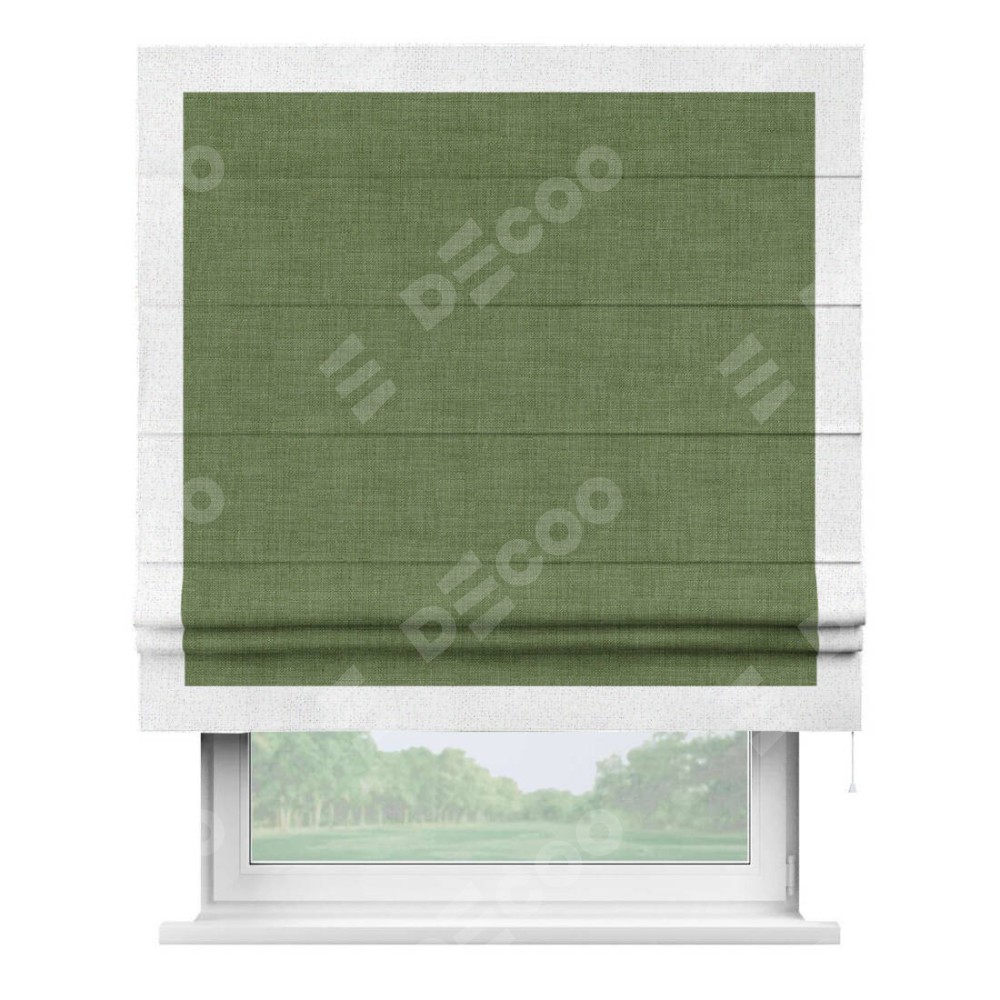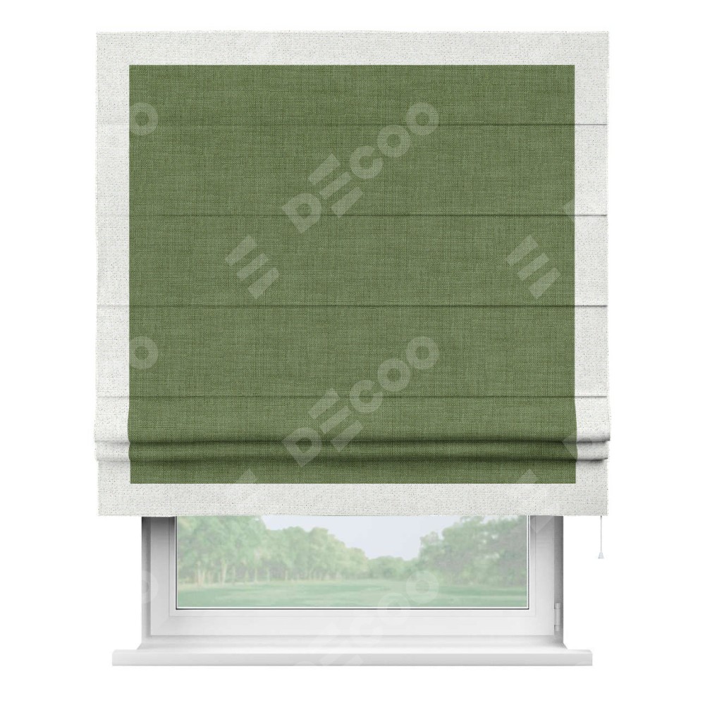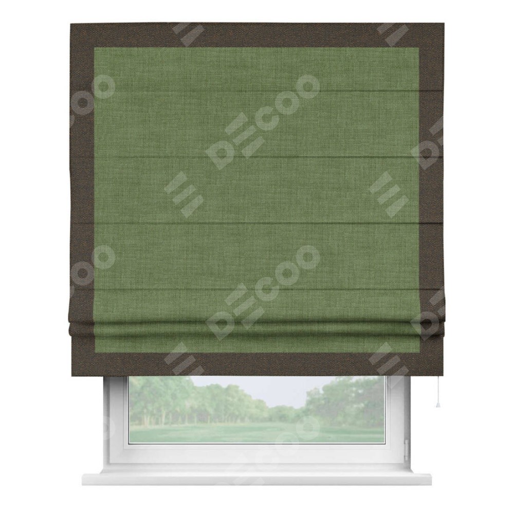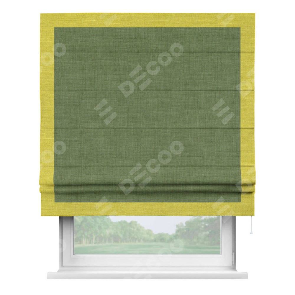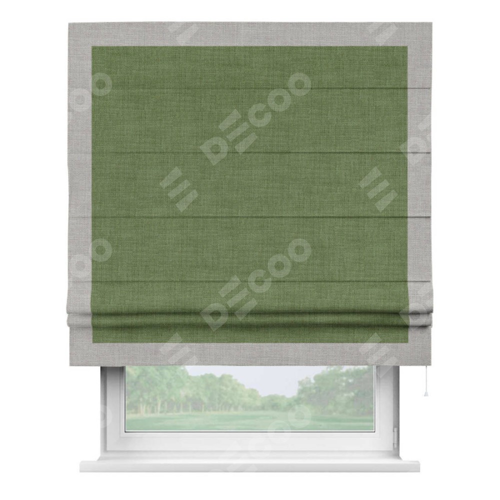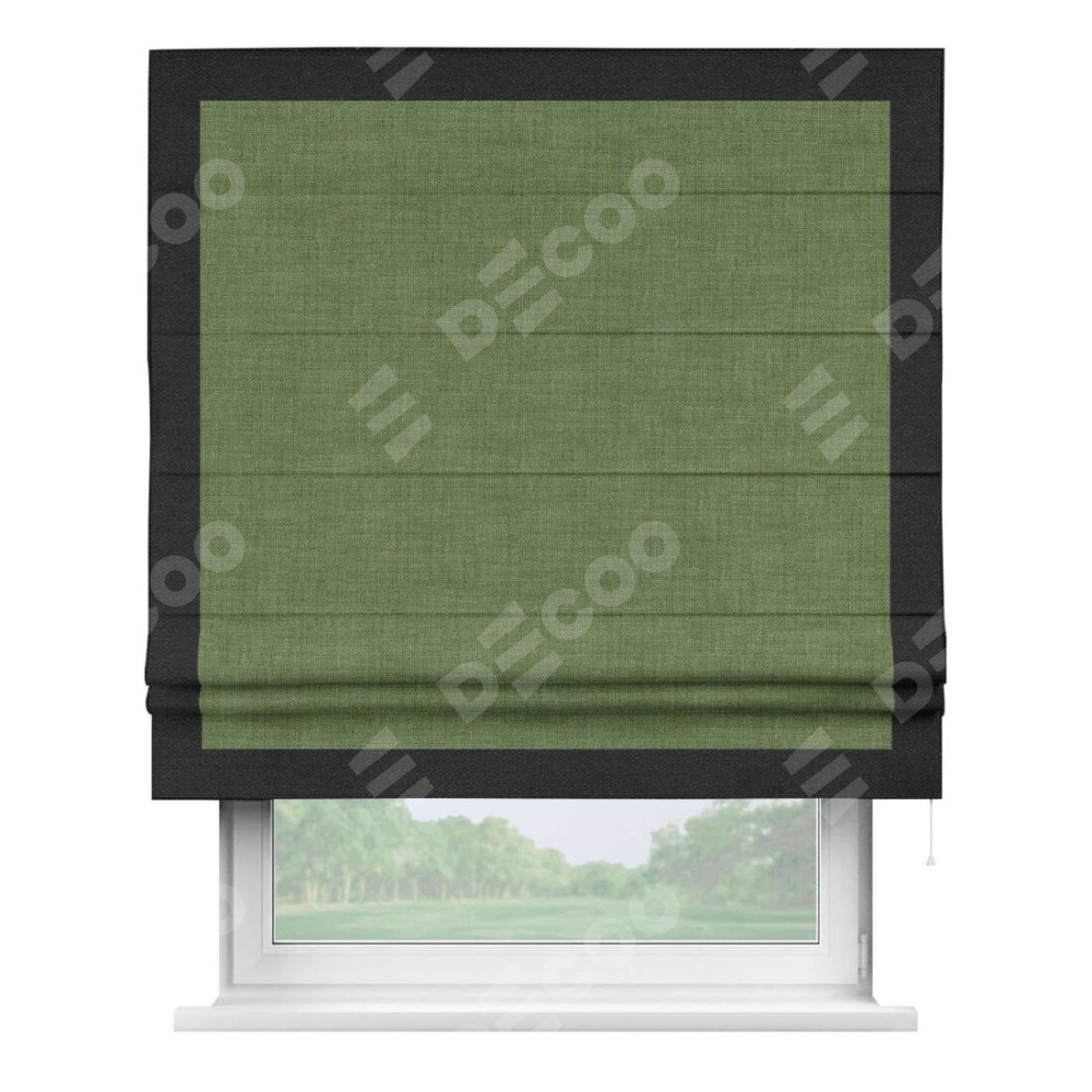 Римская штора «Кортин» для проёма, лён зелёный, с кантом Чесс