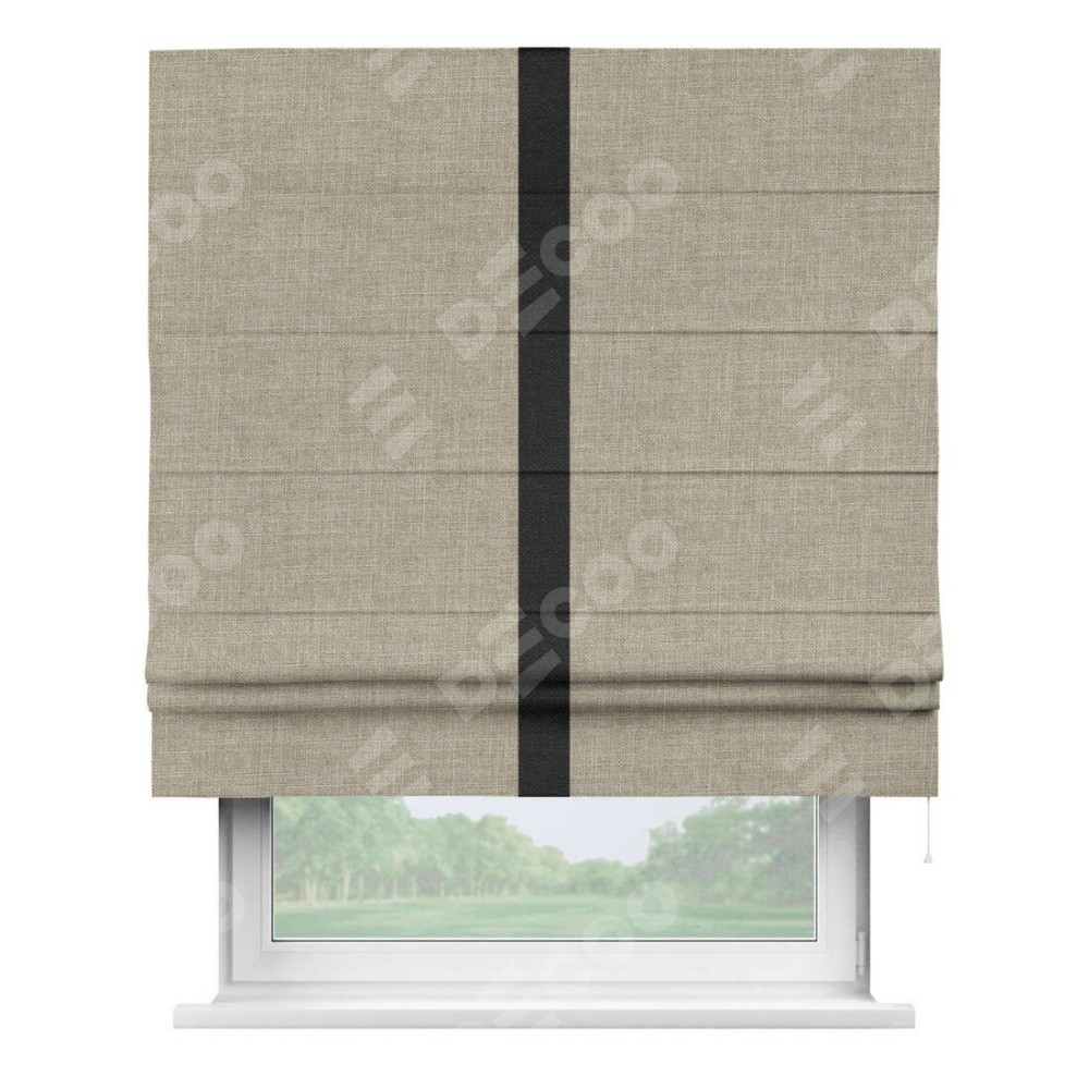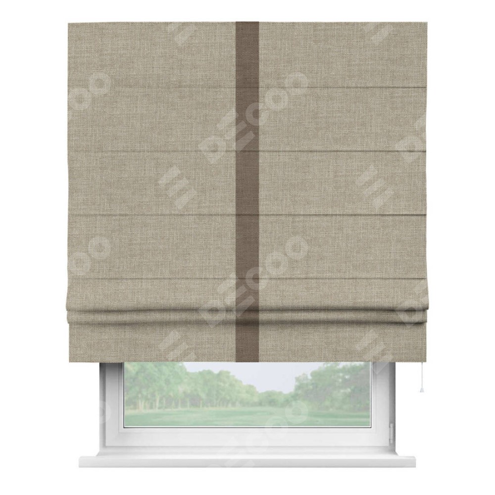 Римская штора «Кортин» для проёма, лён бежевый, с кантом Хайвэй