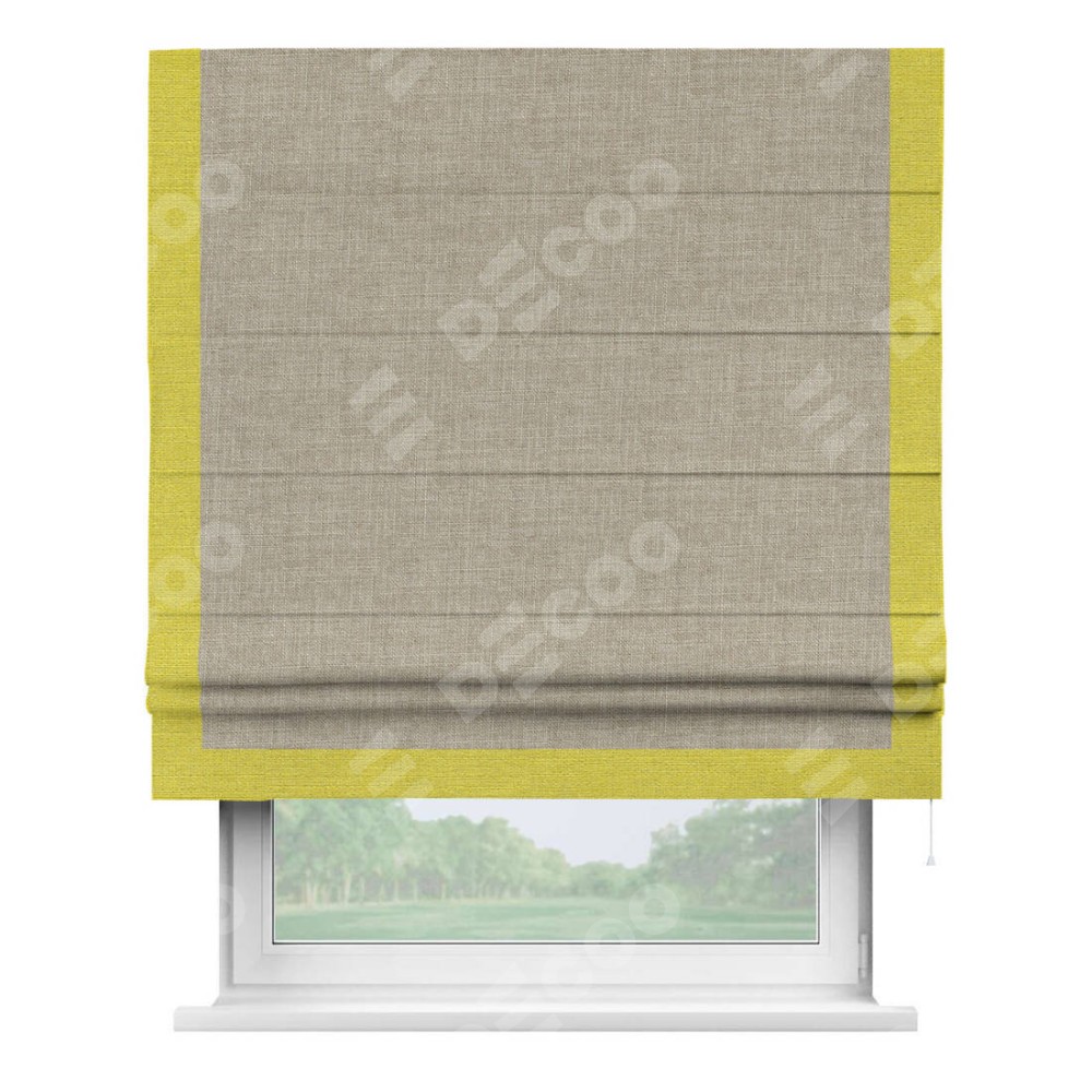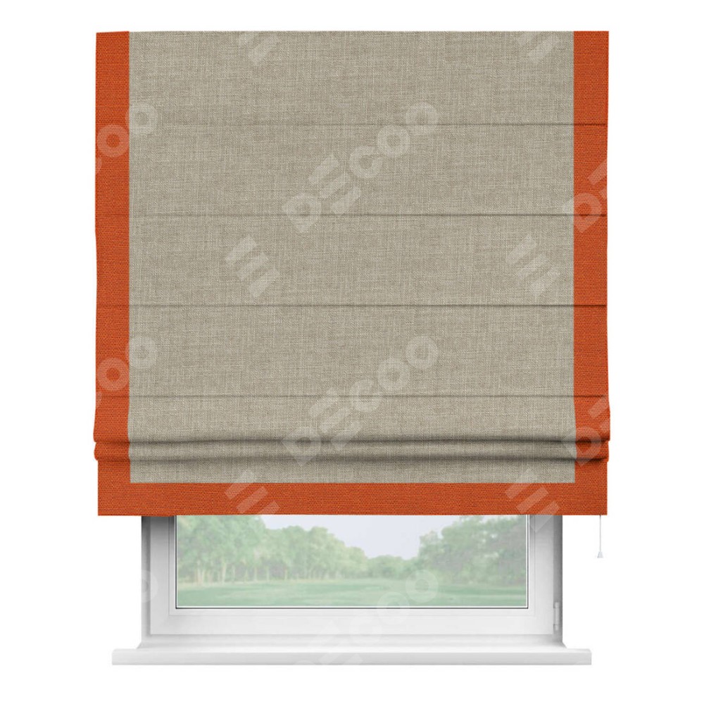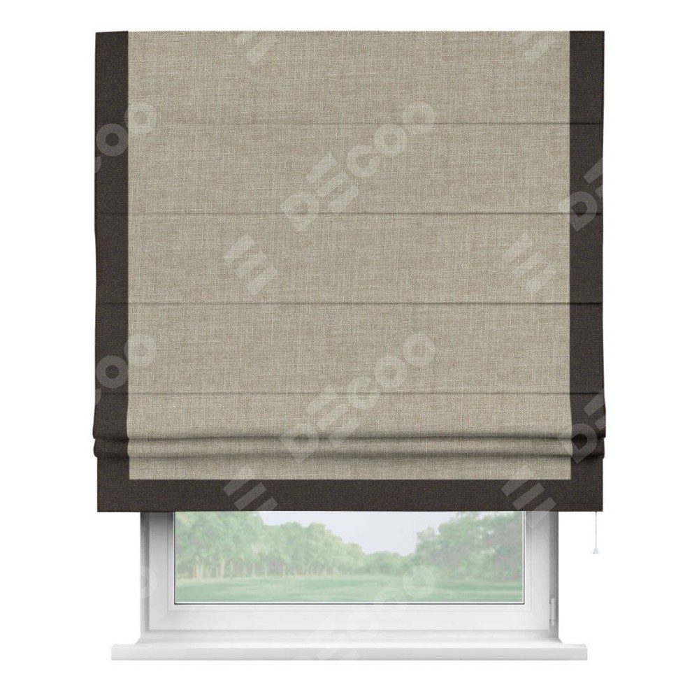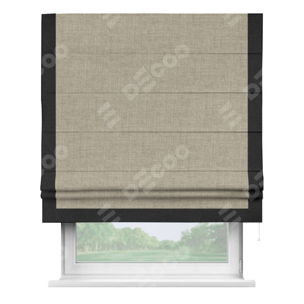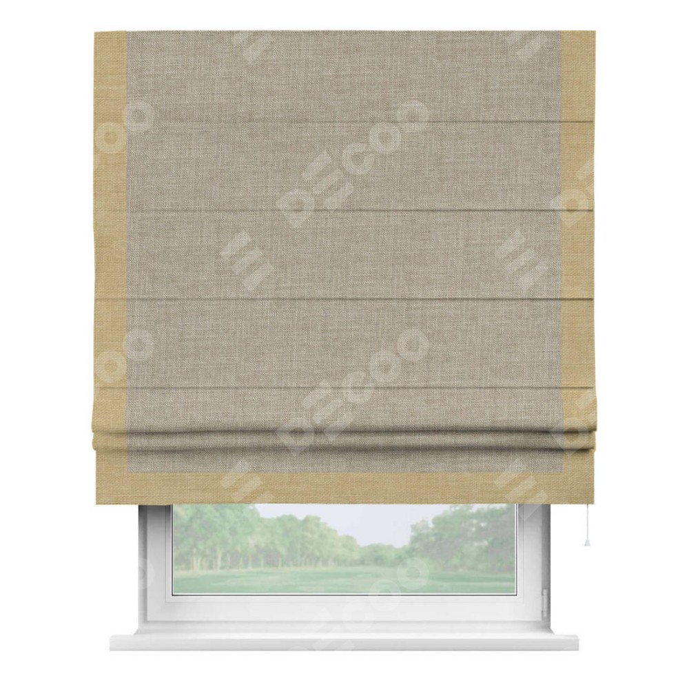Римская штора «Кортин» для проёма, лён бежевый, с кантом Виктория