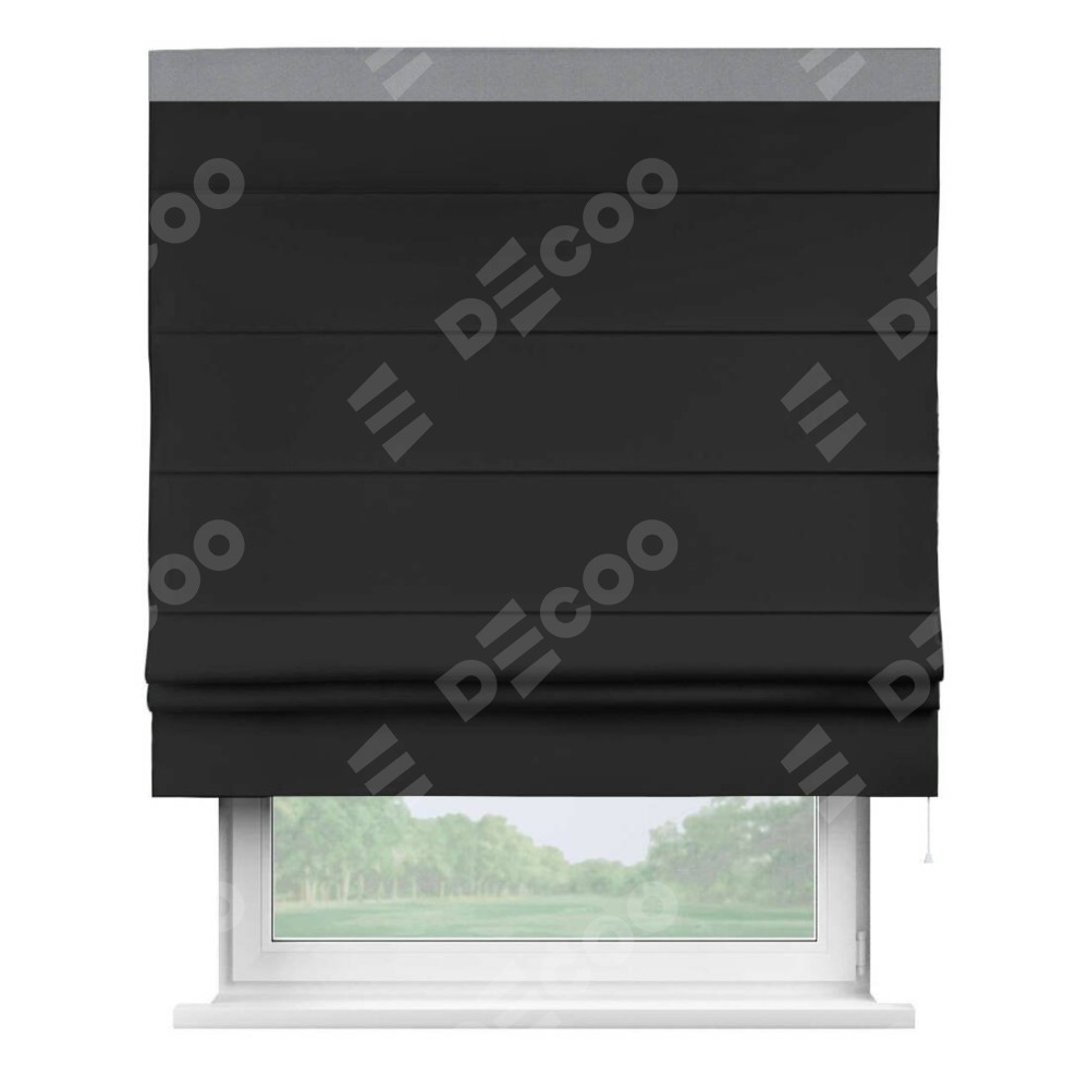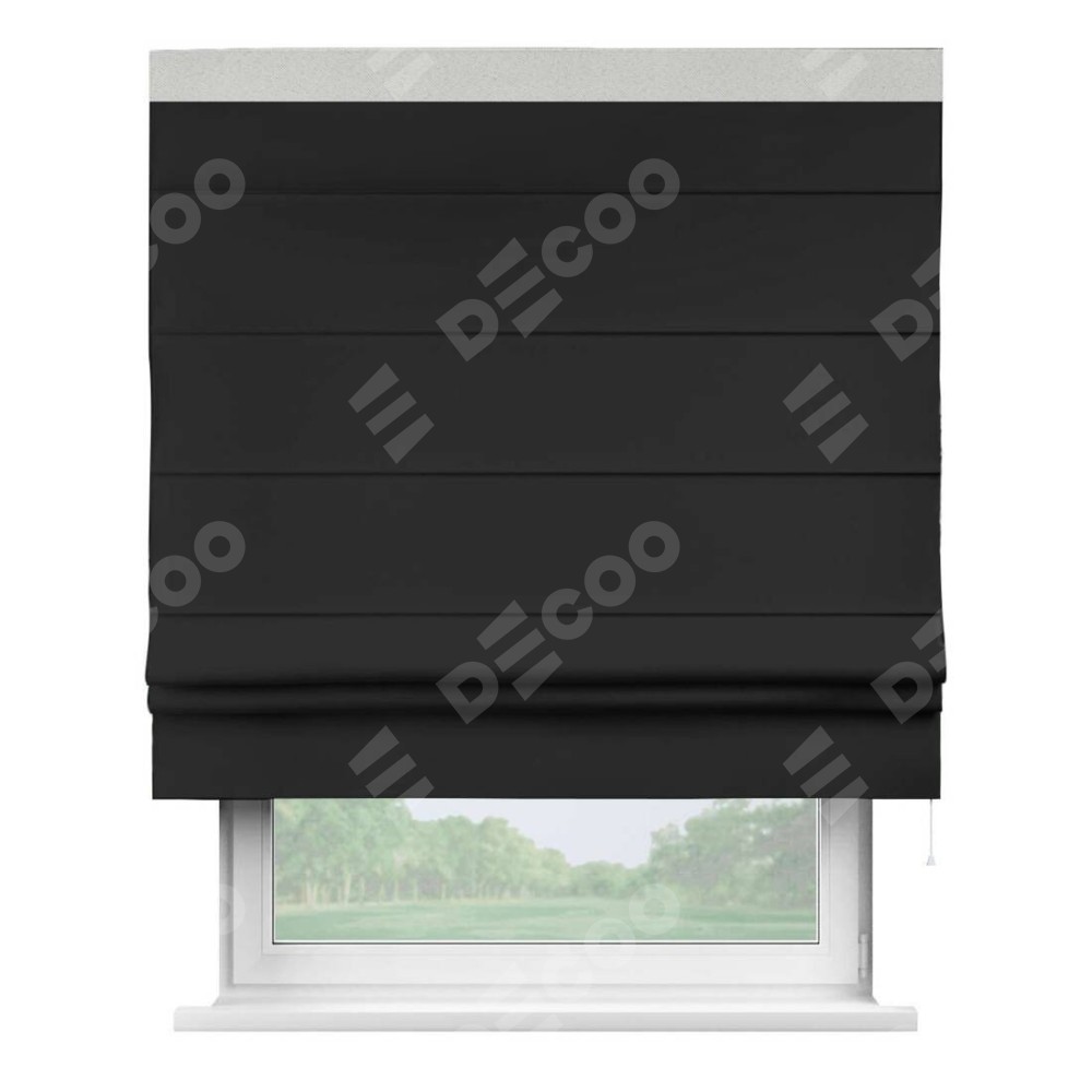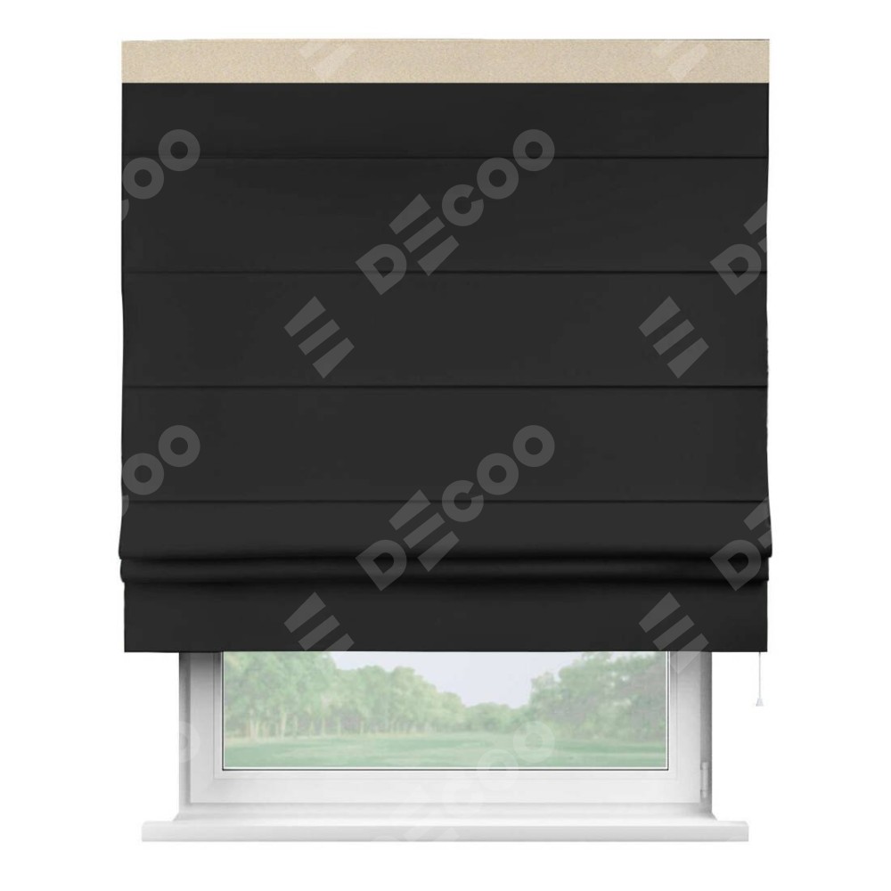 Римская штора «Cortin» для проёма, блэкаут однотонный черный с кантом Кинг