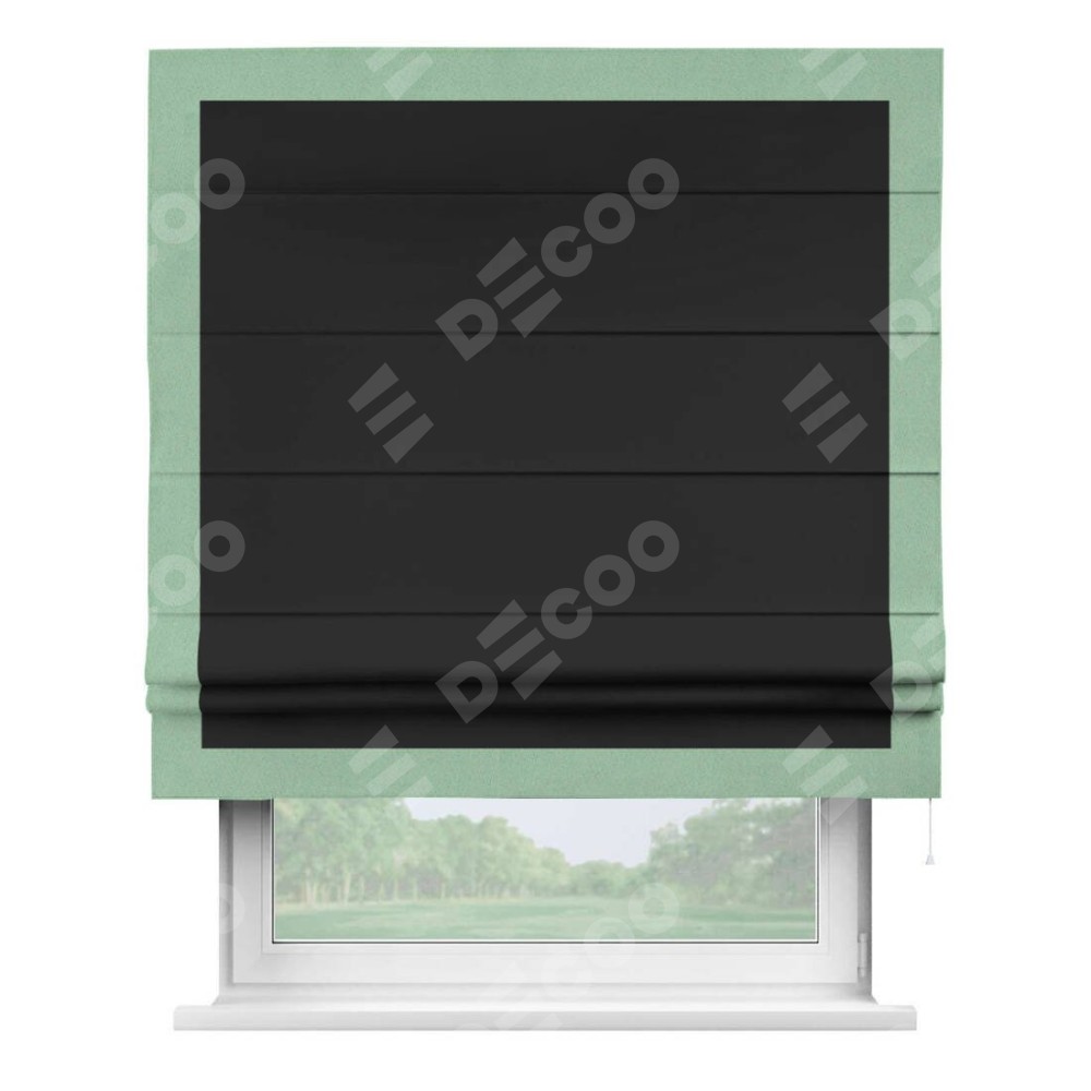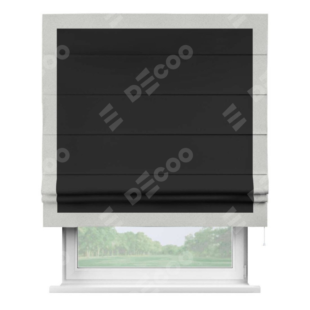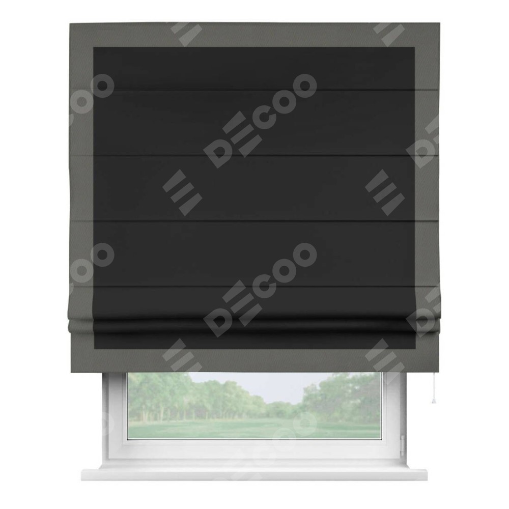 Римская штора «Cortin» для проёма, блэкаут однотонный черный с кантом Чесс