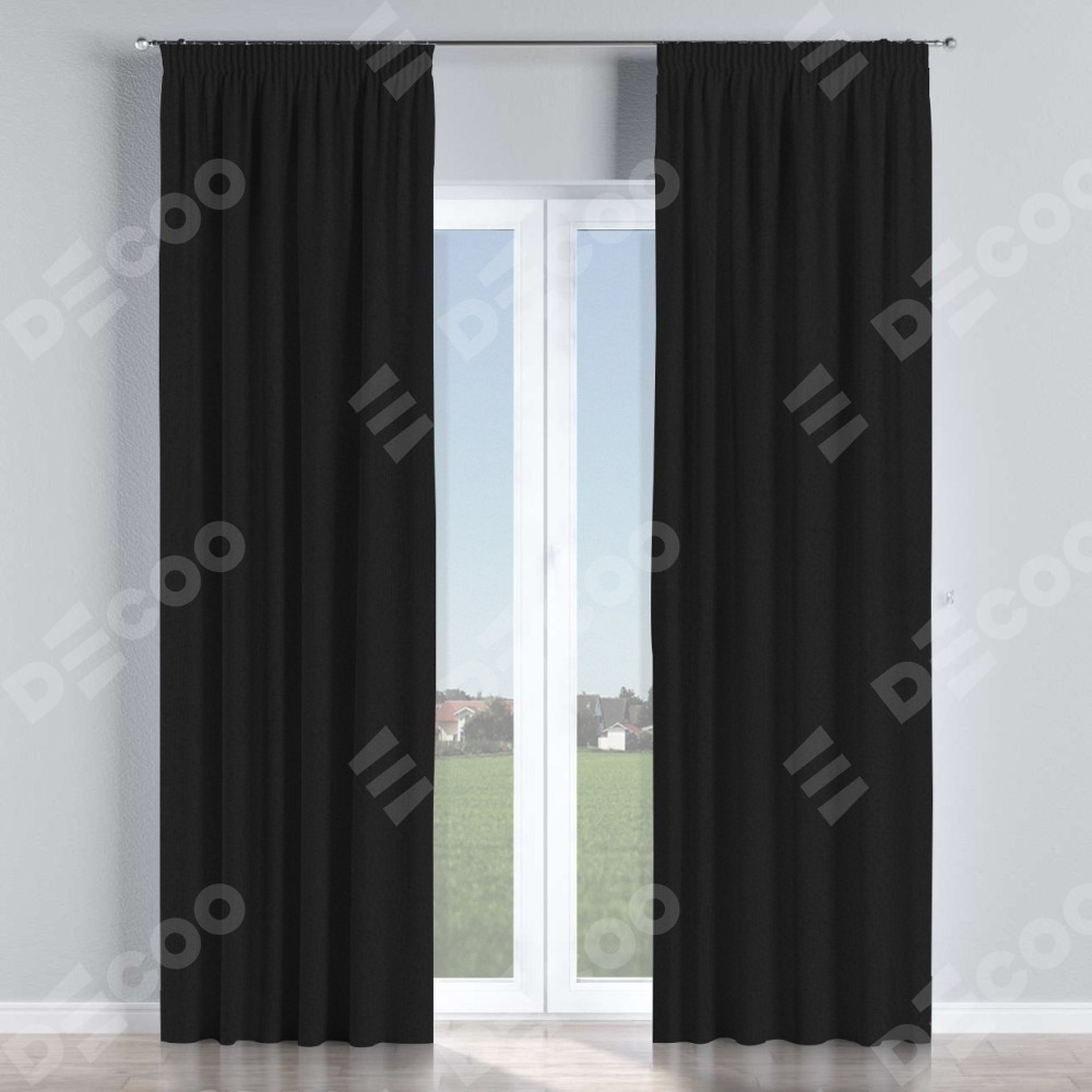 Комплект прямых штор, от производителя «Cortin», пошиты из ткани лён рустик черный, артикул ткани 145313. С изнаночной стороны в верхней части штор пристрачивается шторная лента с декоративными складками «Карандаш». Для создания элегантных складок рекомендуемый коэффициент 1:2 (на 100 см. ширины проёма 200 см. ширины ткани). Важно! Ширина штор указана без учёта коэффициента сборки!