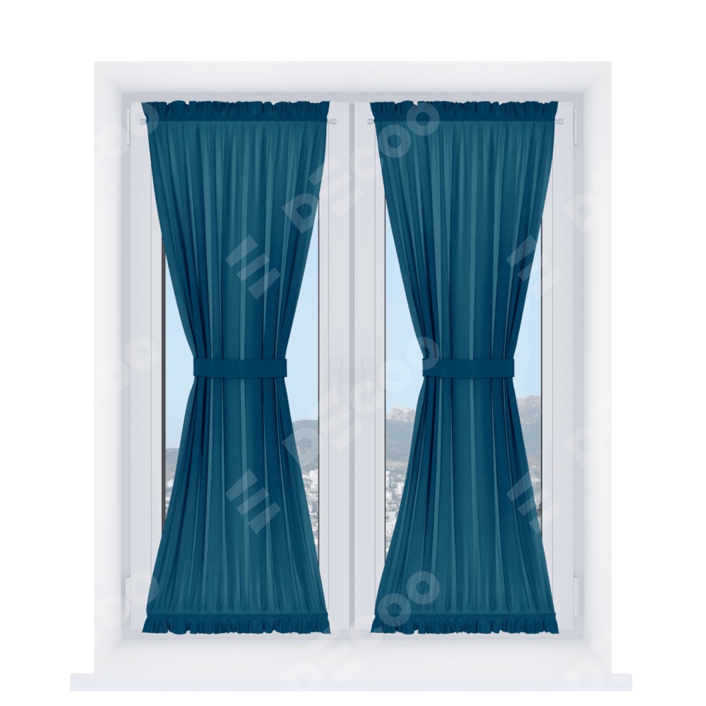 Штора «Песочные часы» производителя «Cortin», используется для створок окон и дверей, пошита из ткани лён димаут синий, артикул ткани 16260.