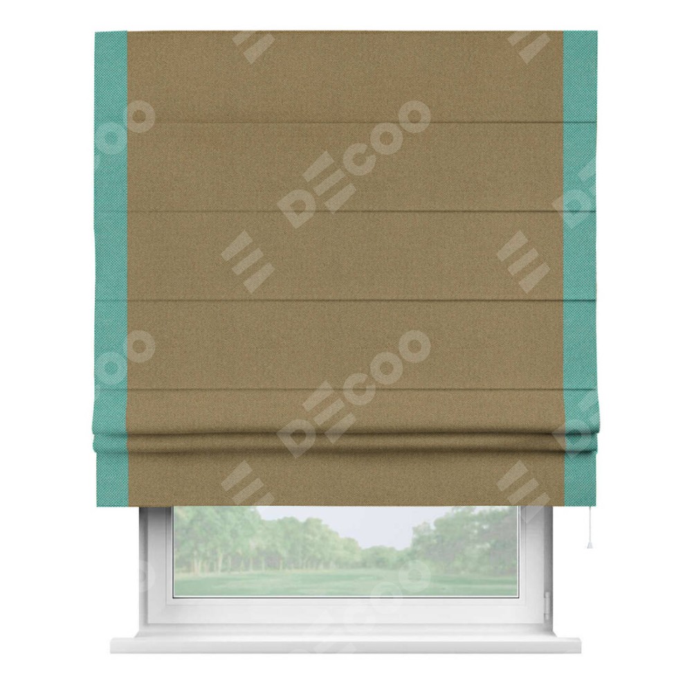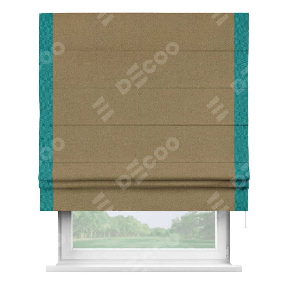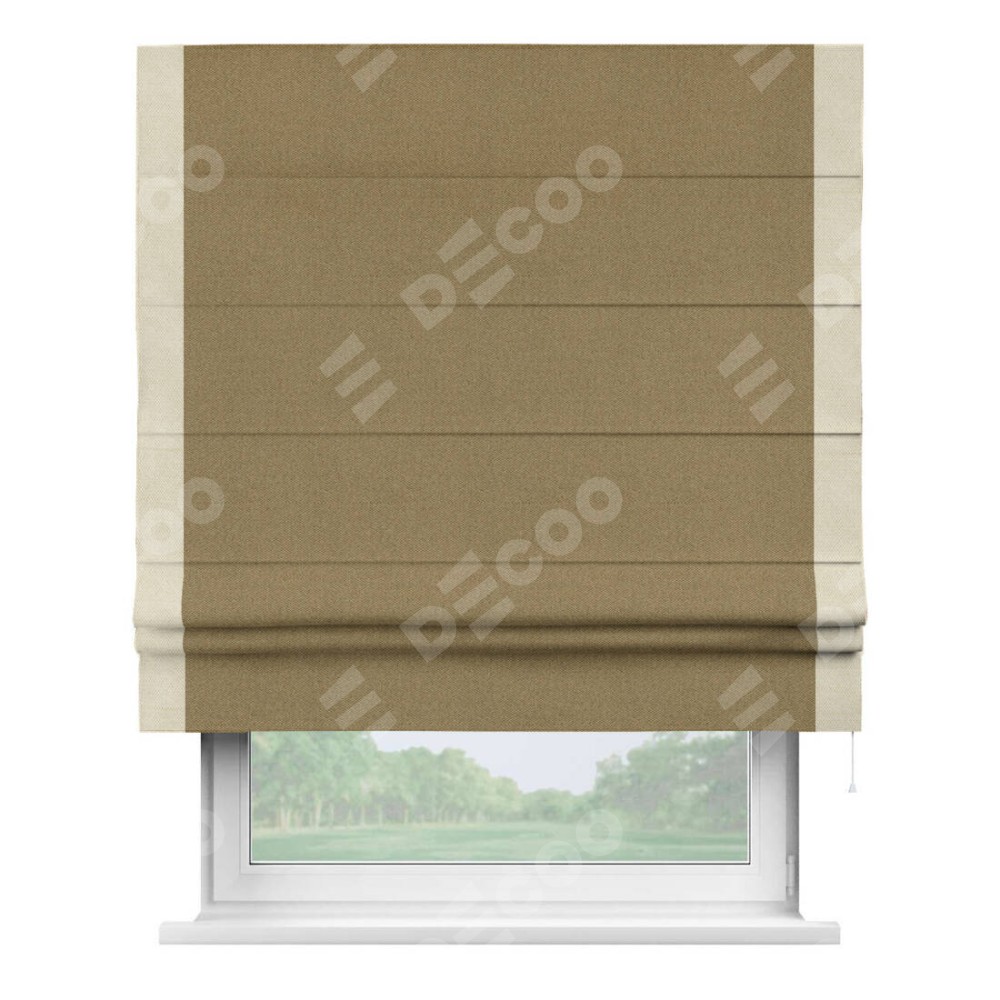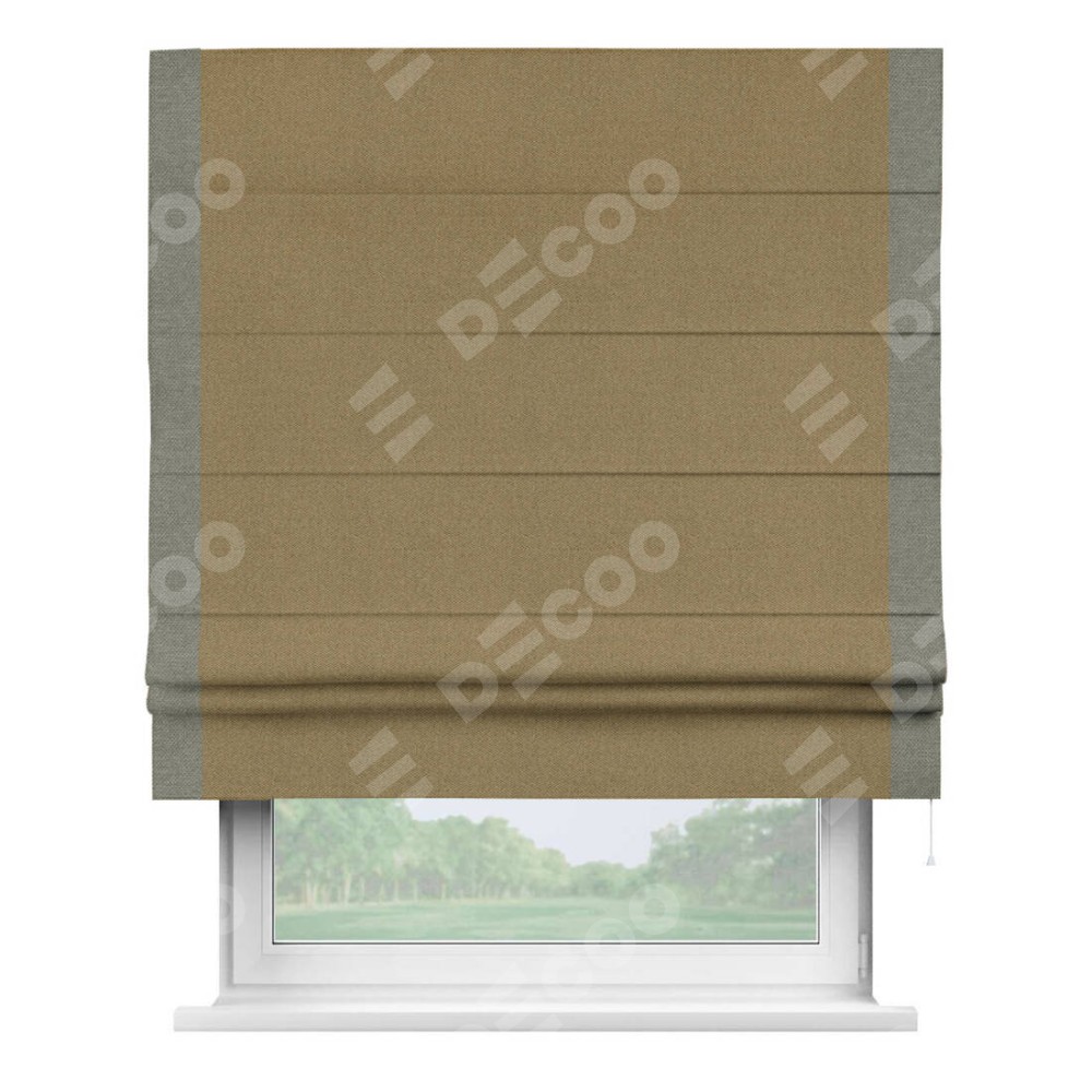 Римская штора «Кортин» с кантом Стрим Дуо, для проема, ткань лён димаут, оливковый