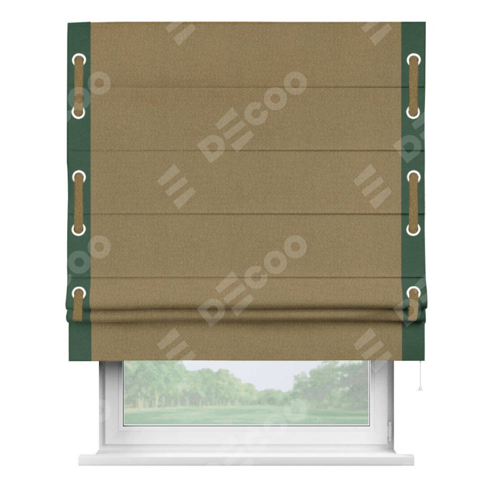 Римская штора «Кортин» с кантом Стрим Дуо (люверсы с пояском), для проема, ткань лён димаут, оливковый