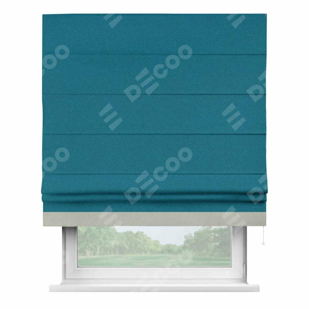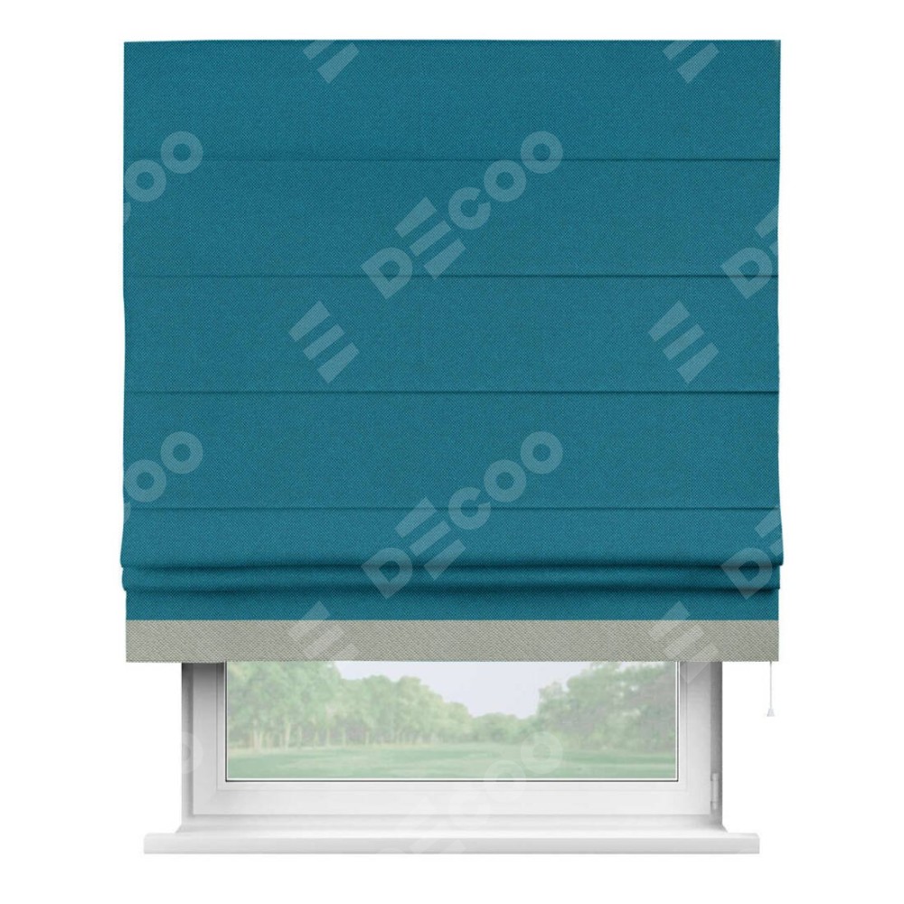 Римская штора «Кортин» с кантом Джестер, для проема, ткань лён димаут, светло-синий
