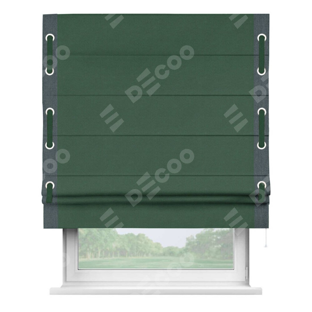 Римская штора «Кортин» с кантом Стрим Дуо (люверсы с пояском), для проема, ткань лён димаут, тёмно-зелёный