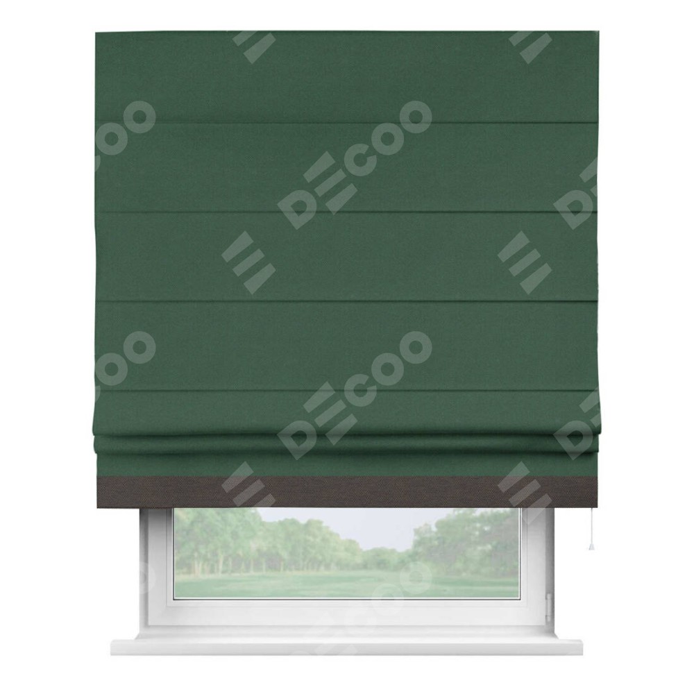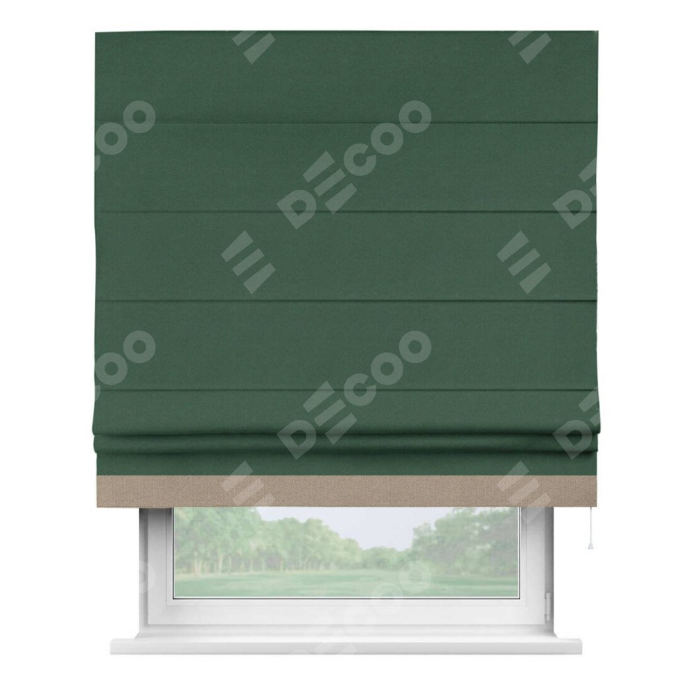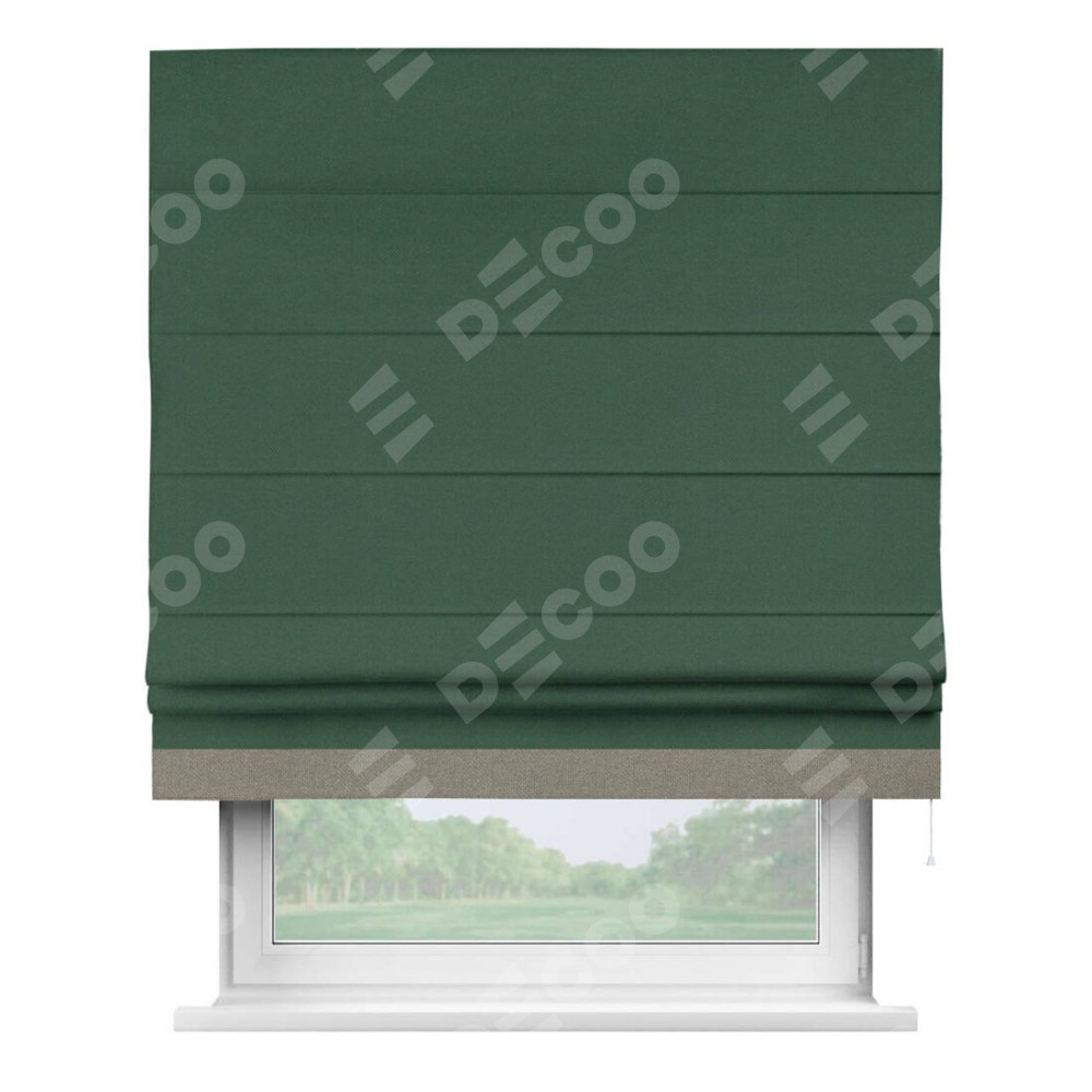 Римская штора «Кортин» с кантом Джестер, для проема, ткань лён димаут, тёмно-зелёный