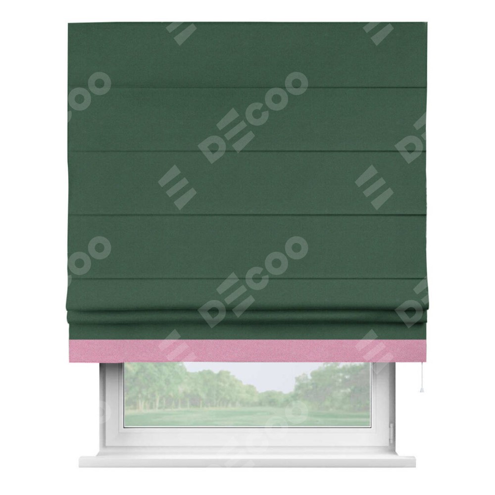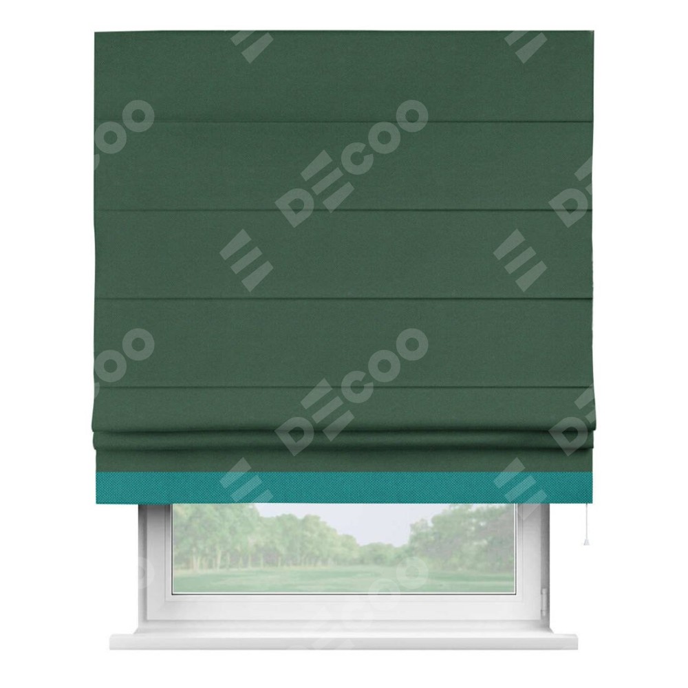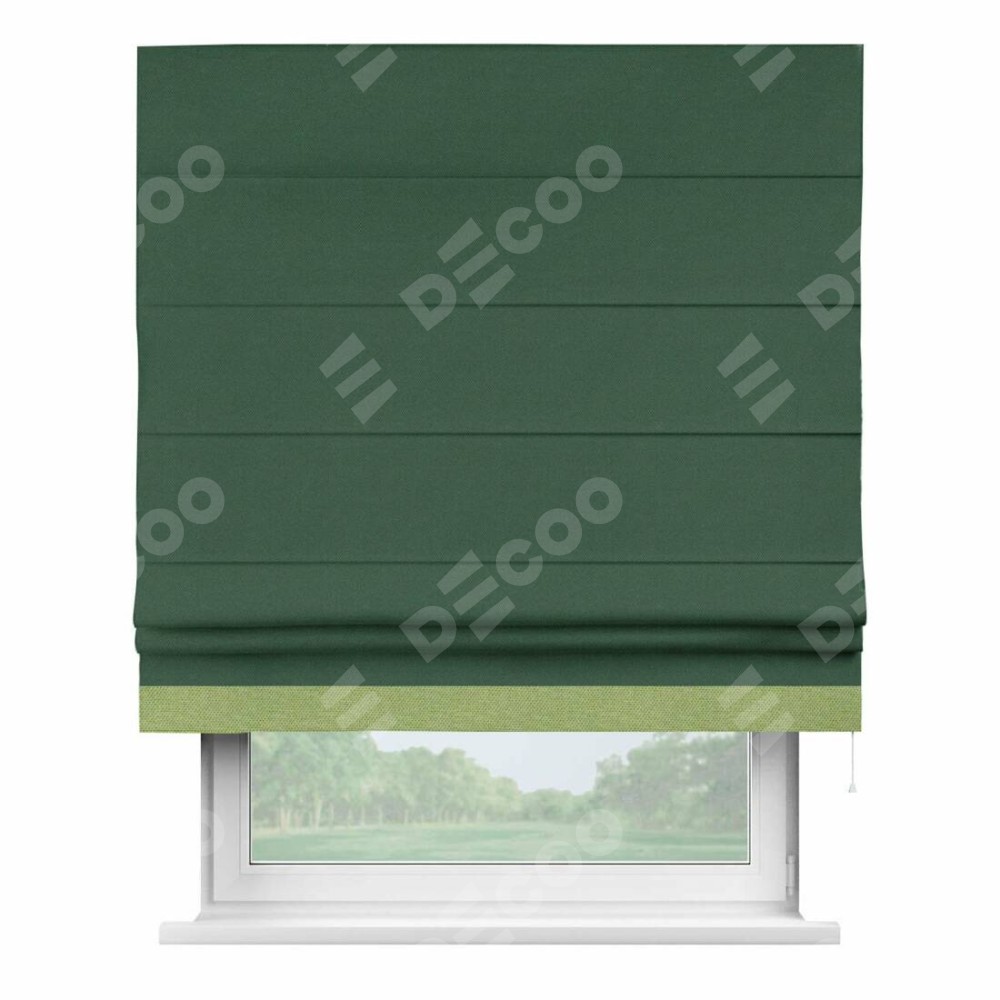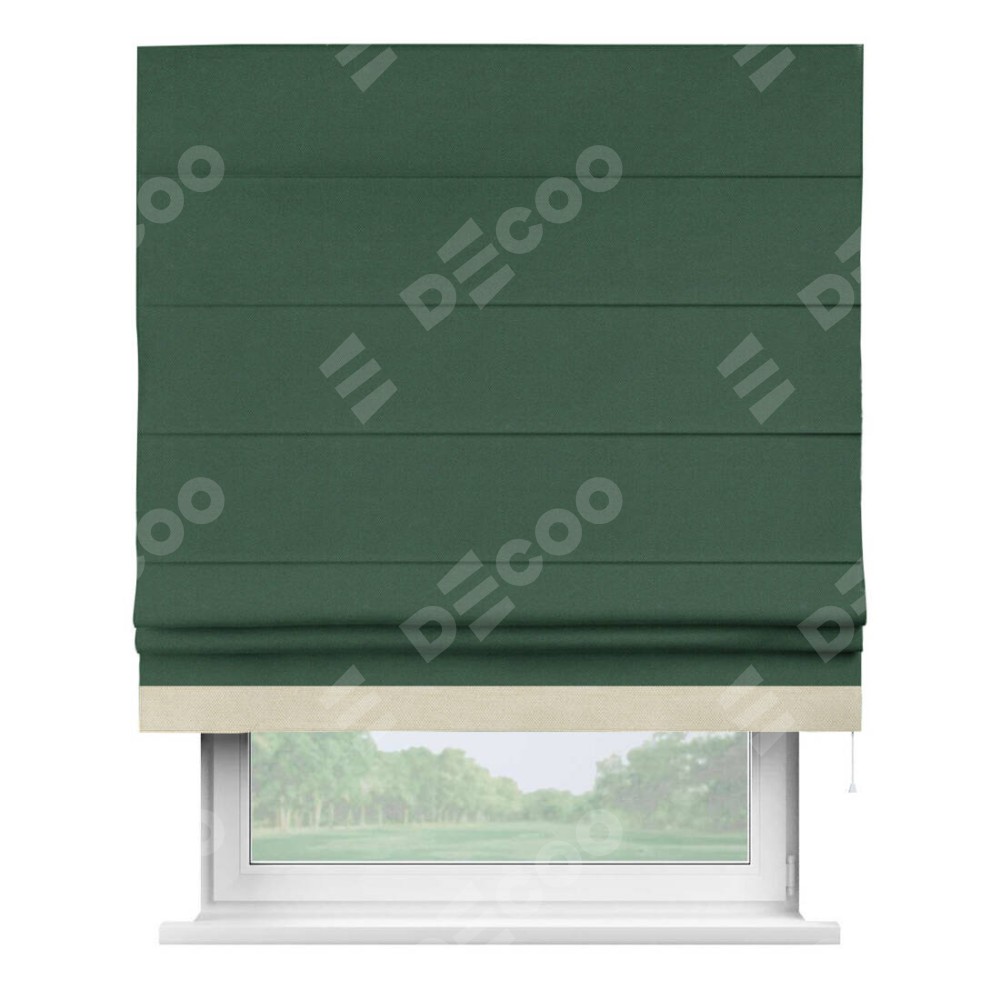 Римская штора «Кортин» с кантом Джестер, для проема, ткань лён димаут, тёмно-зелёный