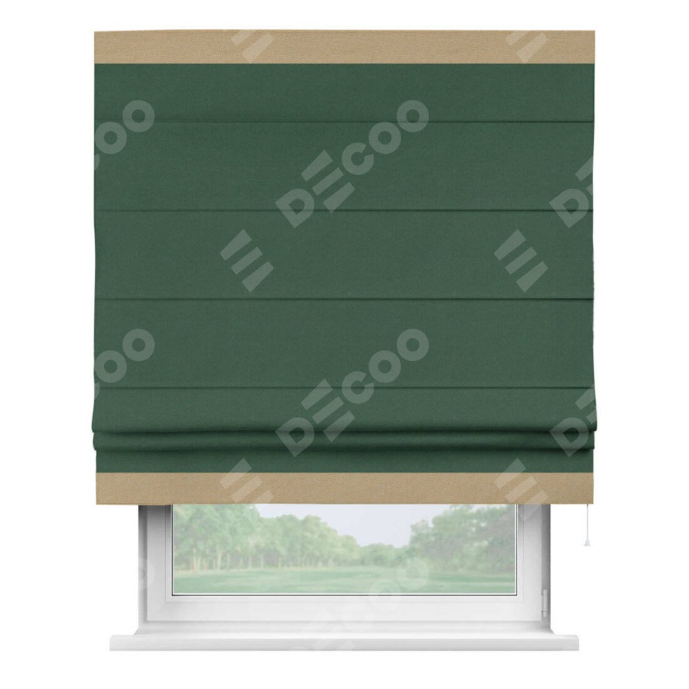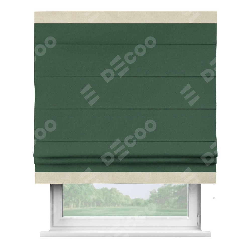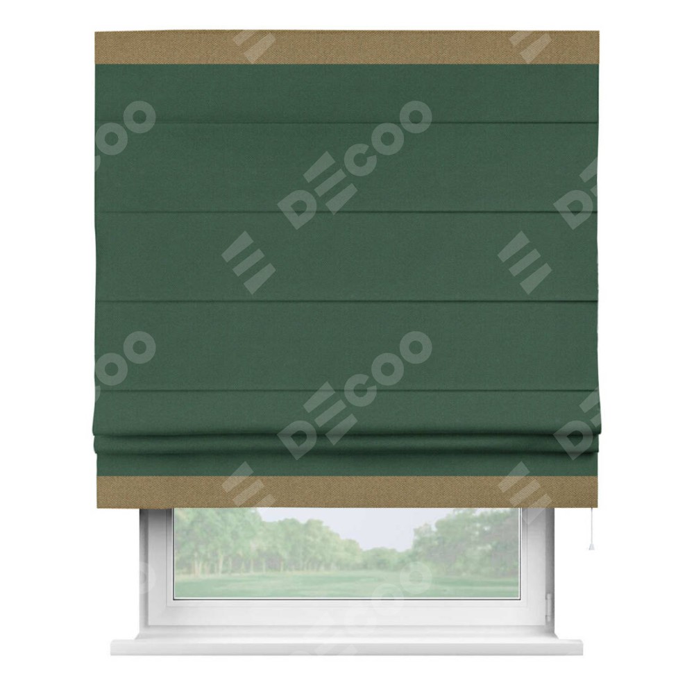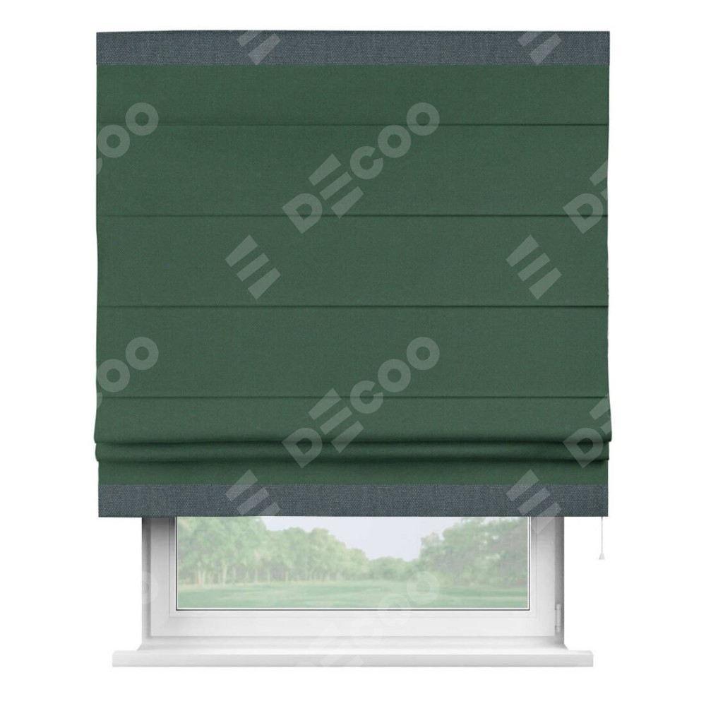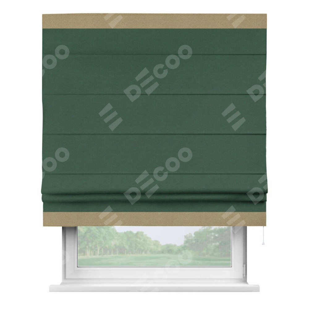 Римская штора «Кортин» с кантом Горизонт, для проема, ткань лён димаут, тёмно-зелёный