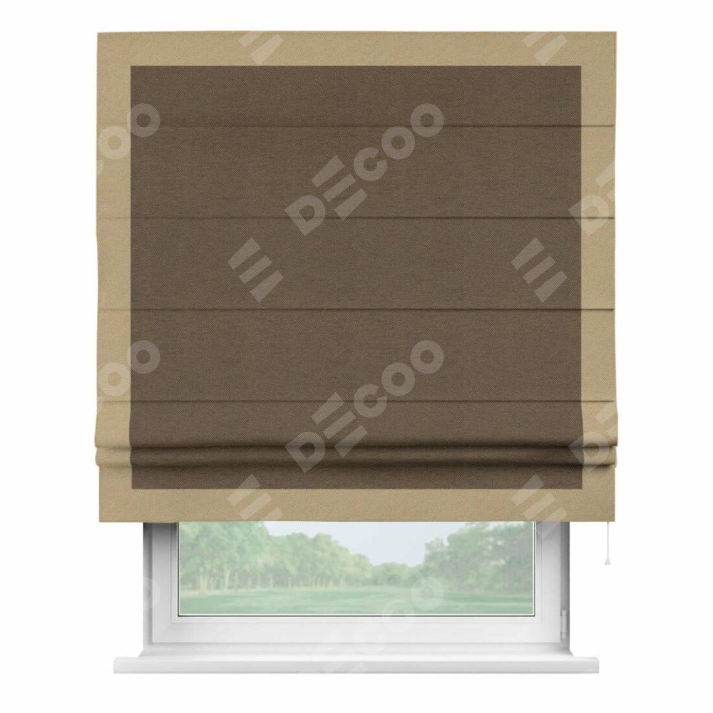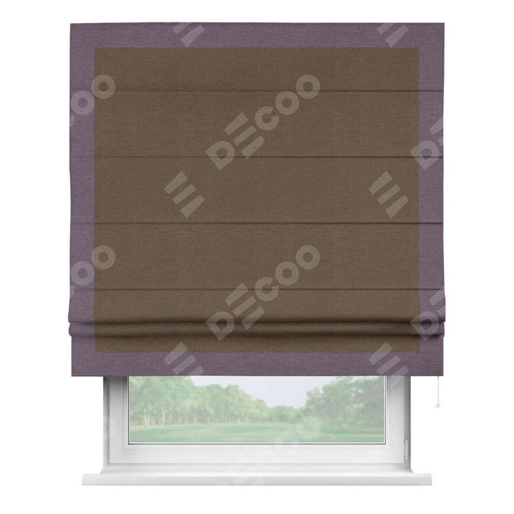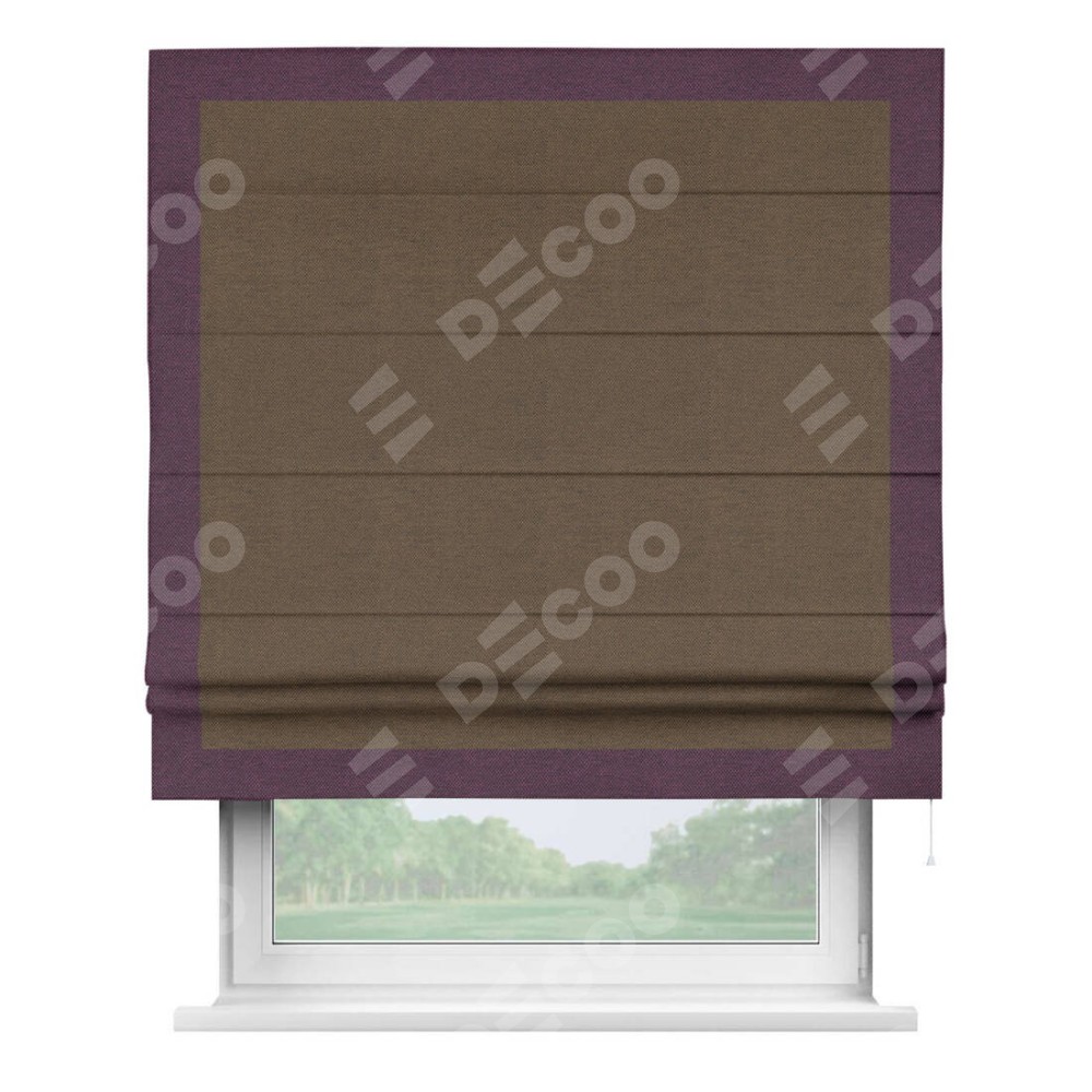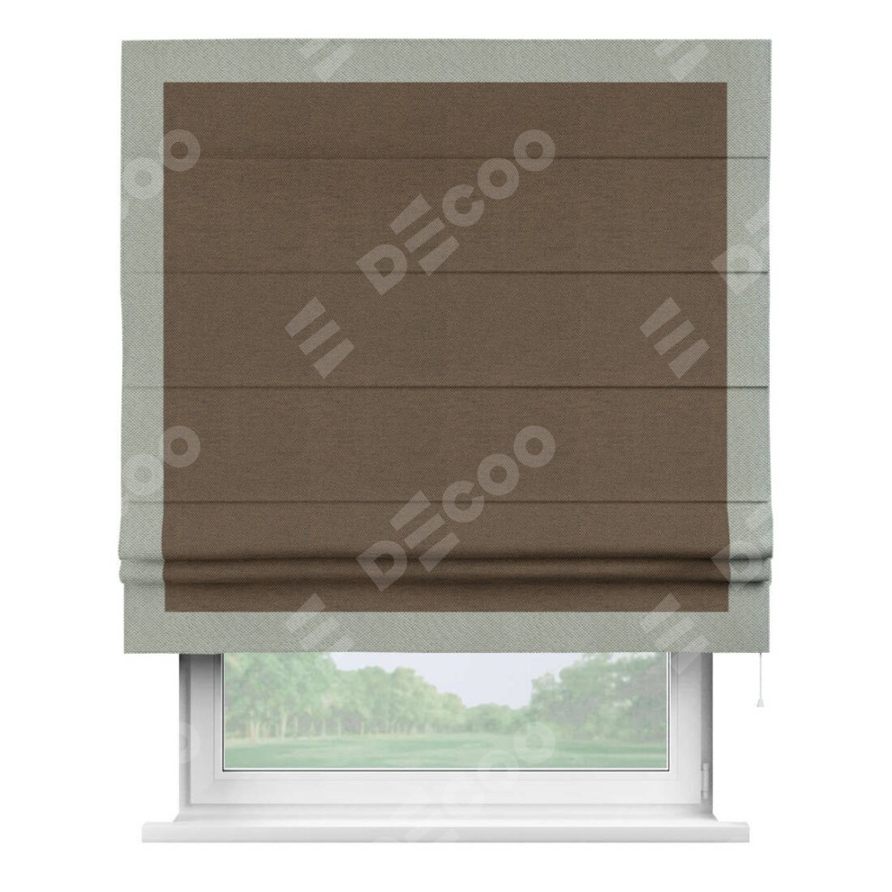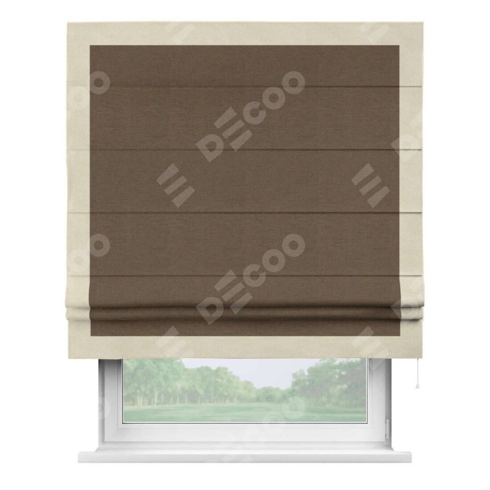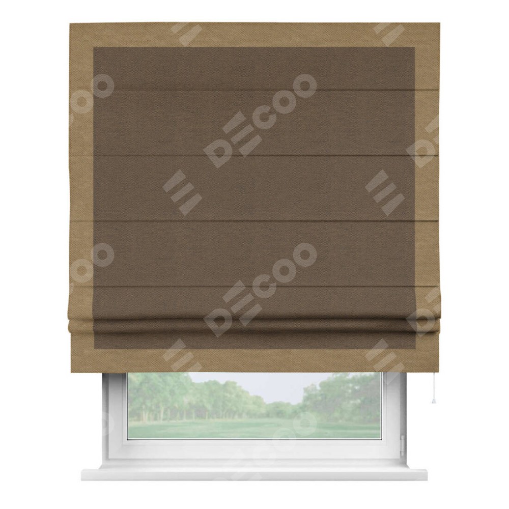 Римская штора «Кортин» с кантом Чесс, для проема, ткань лён димаут, тёмно-коричневый