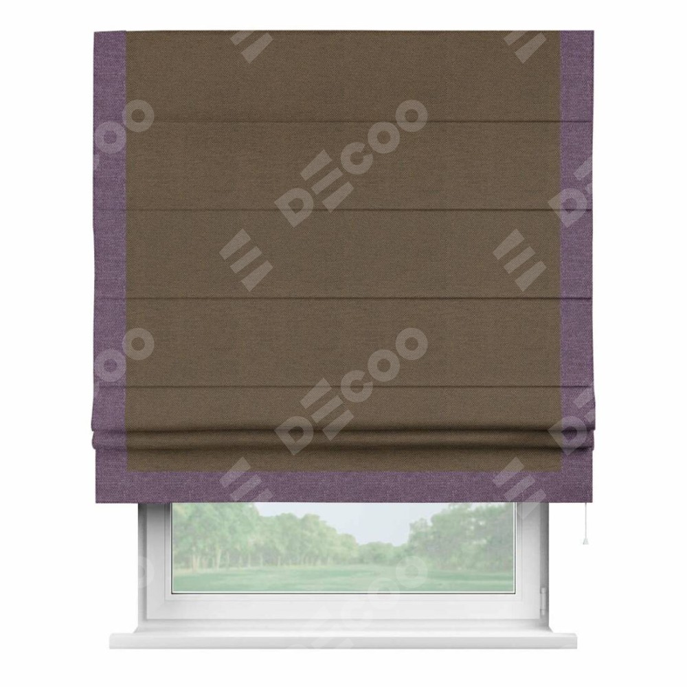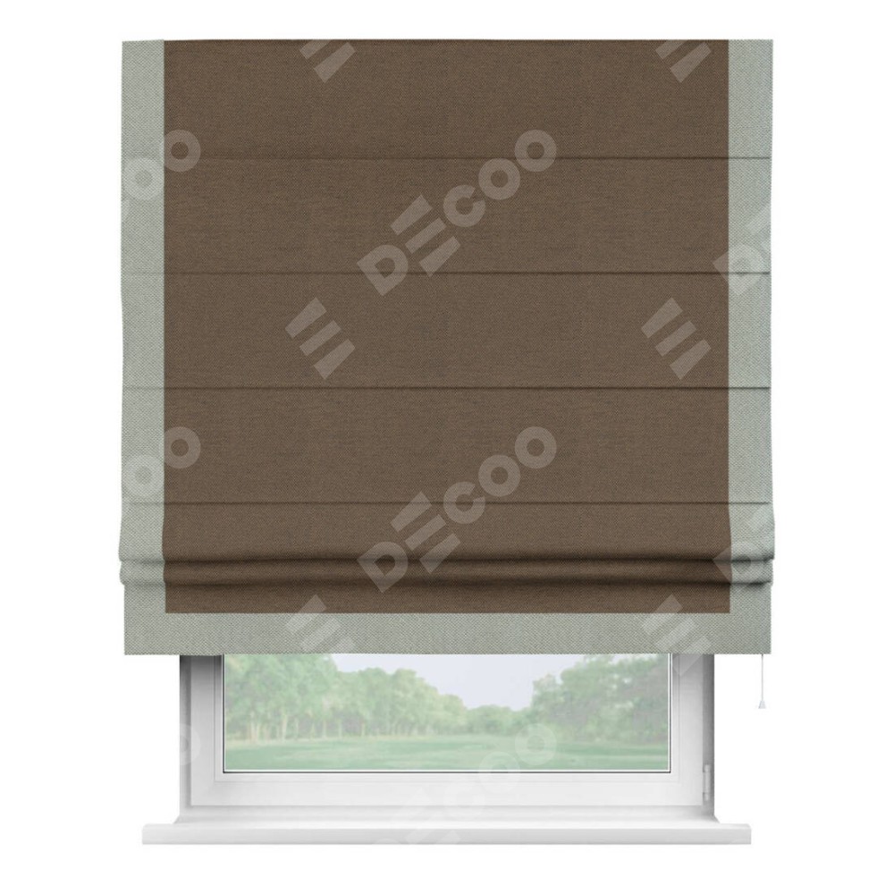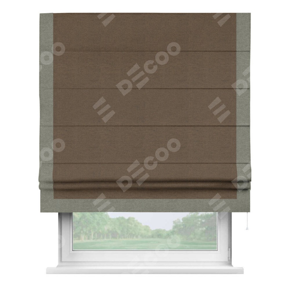 Римская штора «Кортин» с кантом Виктория, для проема, ткань лён димаут, тёмно-коричневый