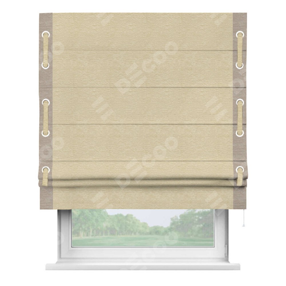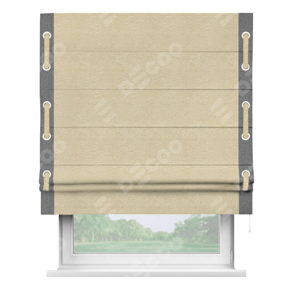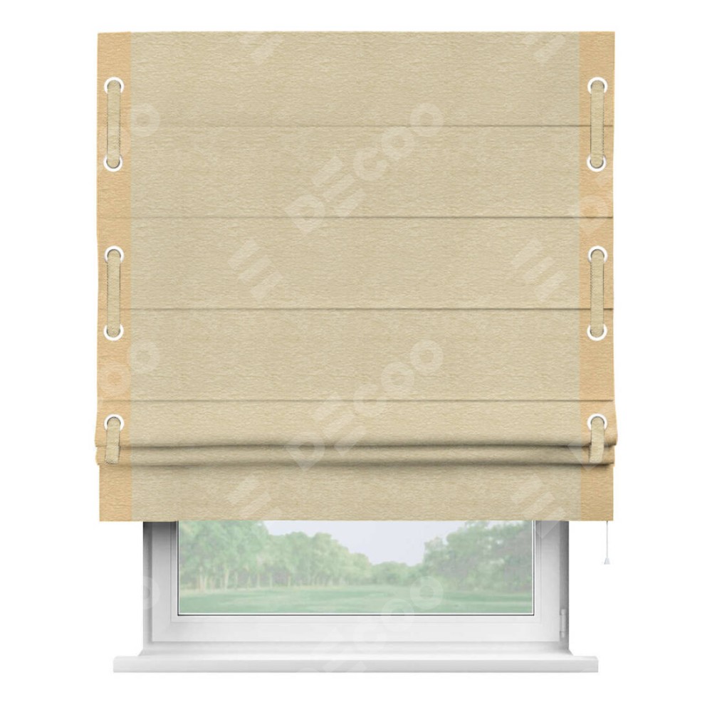 Римская штора «Кортин» с кантом Стрим Дуо (люверсы с пояском), для проема, ткань софт однотонный светло-бежевый