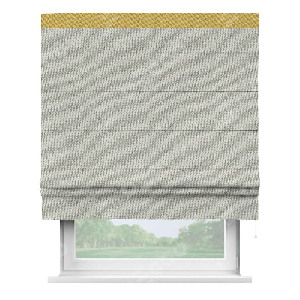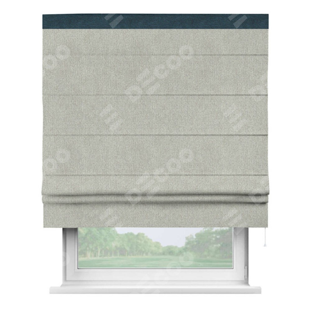 Римская штора производителя «Cortin», используется для проёма, пошита из ткани твид блэкаут коричнево-серый, артикул 21574. Отделка шторы кантом «Кинг», ткань для канта используется из твида разной расцветки на выбор. Имеет универсальный механизм и подходит для монтажа: на потолок, на стену и в нишу.