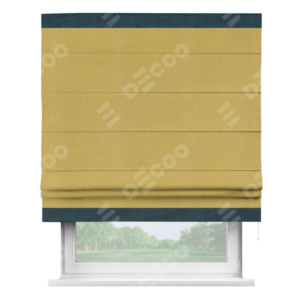 Римская штора «Кортин» с кантом Горизонт, для проема, ткань твид блэкаут, пыльная горчица