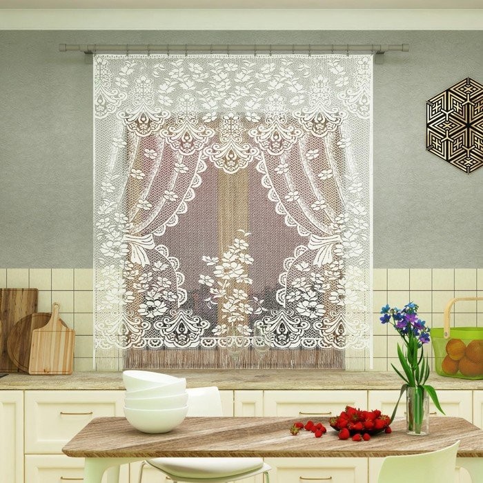 Тюль кухонная без шторной ленты, 200×170 см, белый