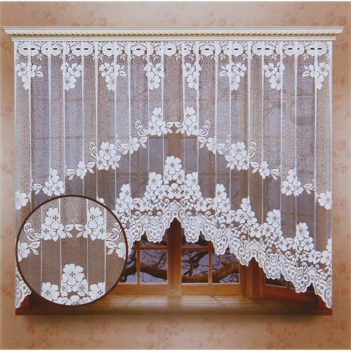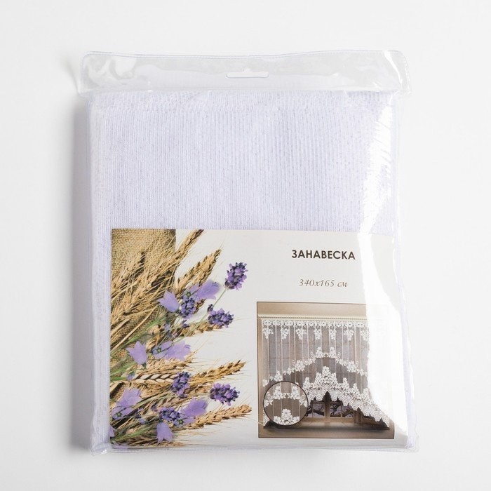 Тюль кухонная со шторной лентой), цвет белый, размер 165×340 см украсит помещение и обновит внешний вид кухни. Изящное цветочное оформление и невесомая фактура подчеркнут общий интерьер.