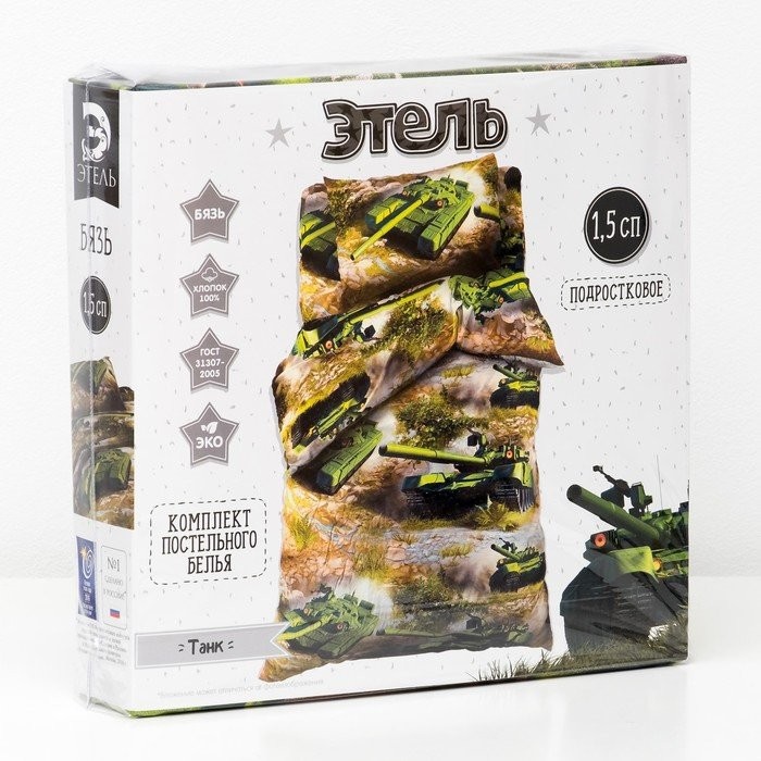 Постельное бельё «Этель» 1.5 сп Танки 143*215 см, 150*214 см, 50*70 см, бязь 125 г/м2