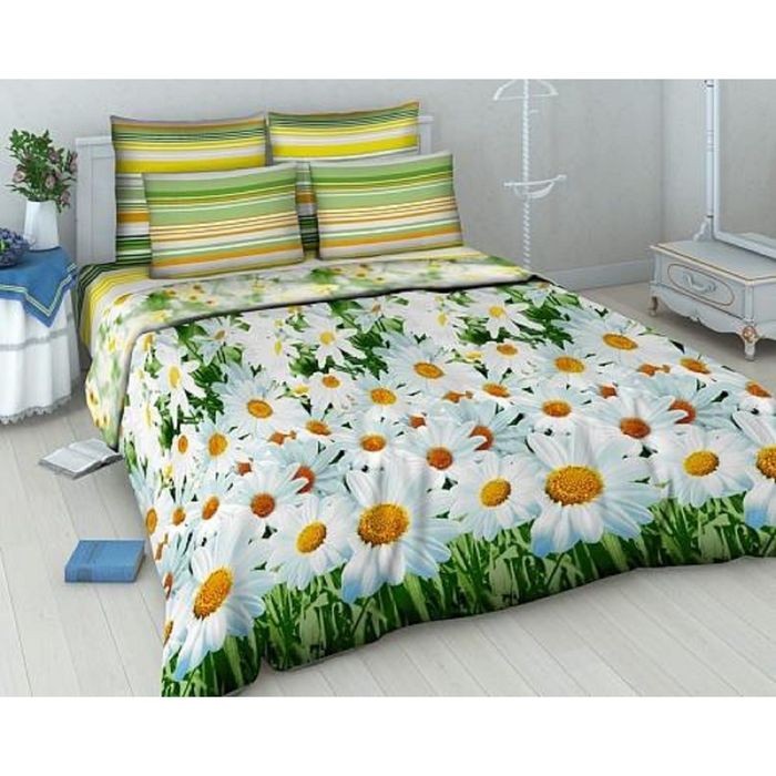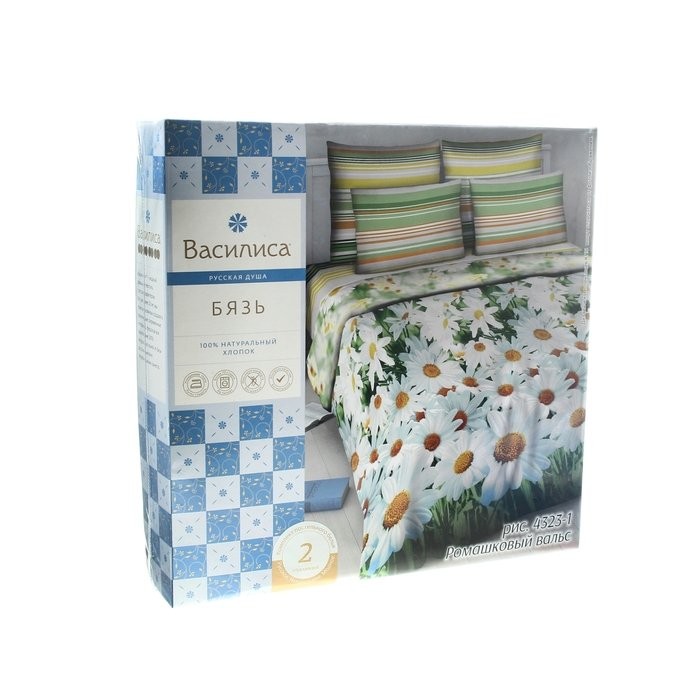 Постельное бельё евро «Василиса» Ромашковый вальс 200×215 см, 200×220 см, 70×70 см — 2 шт.