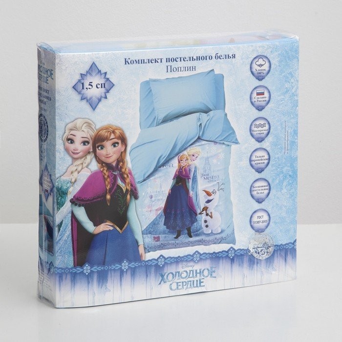 Постельное бельё 1,5 сп «Холодное сердце» 143×215 см, 150×214 см, 50×70 см -1 шт, 100% хлопок, поплин 125 г/м2