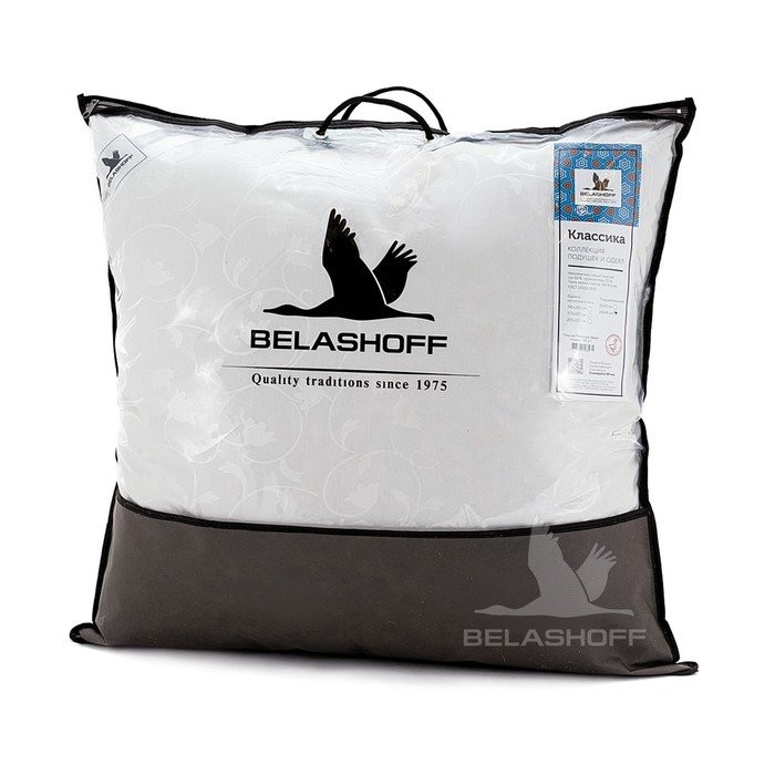 Подушка высокая Belashoff Классика, МИКС, размер 50×70 пух 50%, перо 50%, тик — модель, в качестве наполнителя для которой используются гусиные пух и перо, прошедшие тщательную обработку. Именно поэтому изделие:
