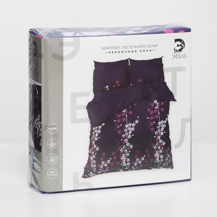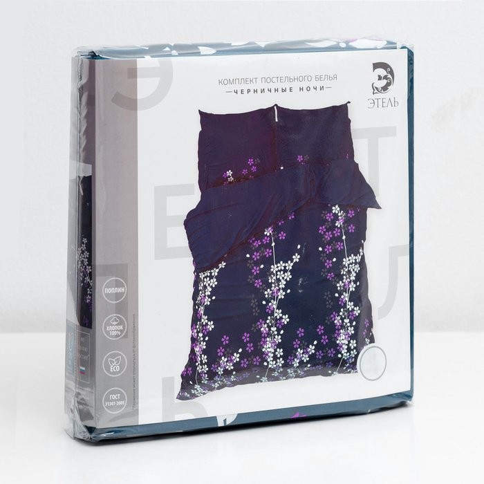 Постельное бельё «Этель» 2 сп., Черничные ночи, размер 175×215 см, 200×220 см, 70×70 см — 2 шт., 100% хлопок, поплин, 125 г/м2