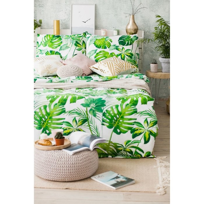 Постельное бельё «Этель» 2 сп., Монстера, размер 175×215 см, 200×220 см, 70×70 см — 2 шт