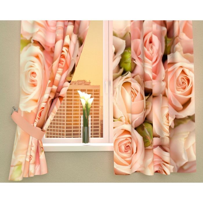 Фотошторы кухонные «Молодые розы», размер 145×160 см — 2 шт., габардин
