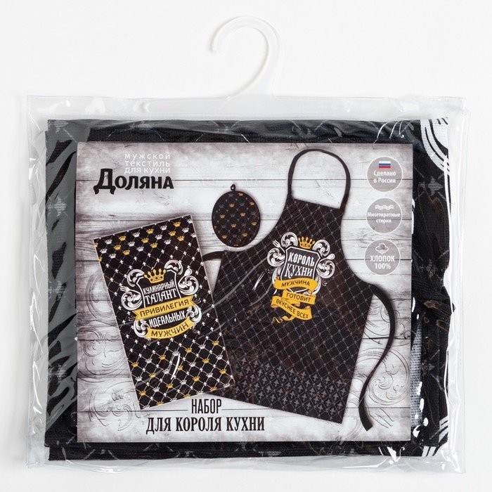 Кухонный набор 3 пр. «Король кухни» фартук 60×70 см, прихватка 20×20 см, полотенце 35×60 см