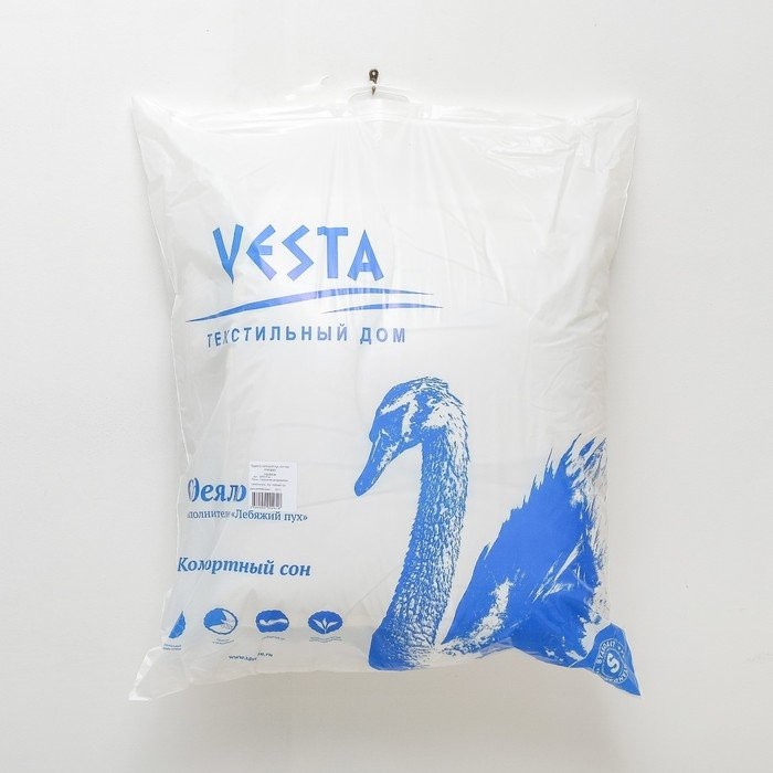 Состав: 30%-й искусственный лебяжий пух, 70%-е синтетическое волокно. Стёжка — одноиголка.