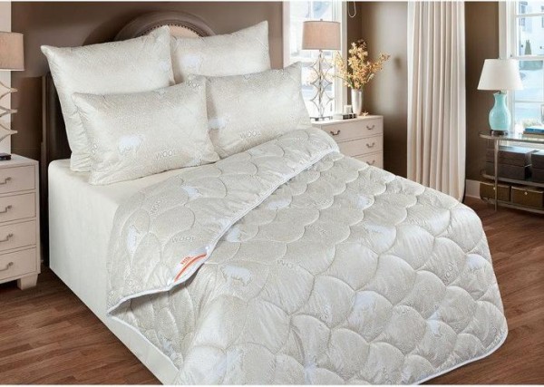 Одеяло зимнее 172×205 см, шерсть мериноса, ткань глосс-сатин, п/э 100%