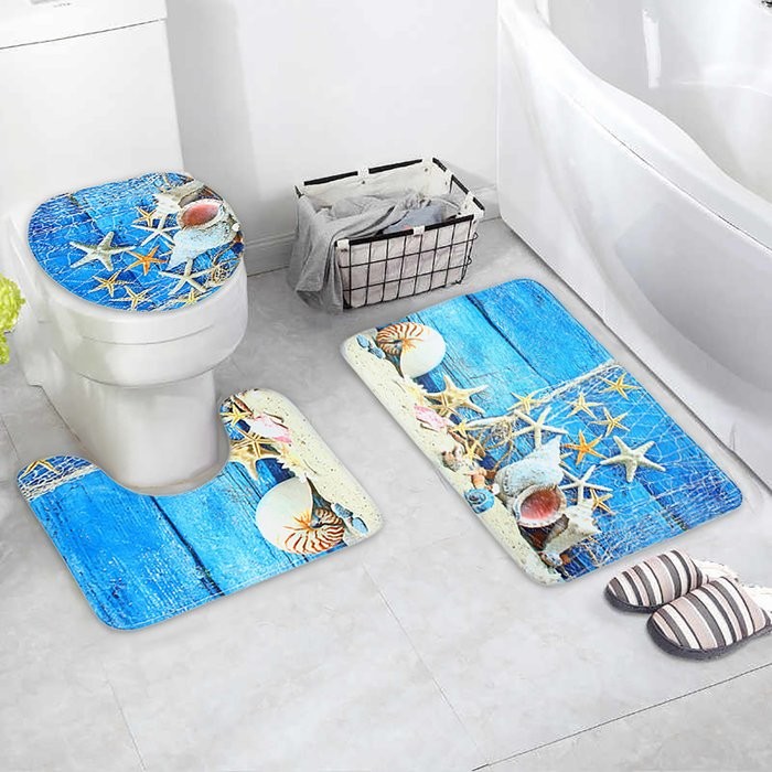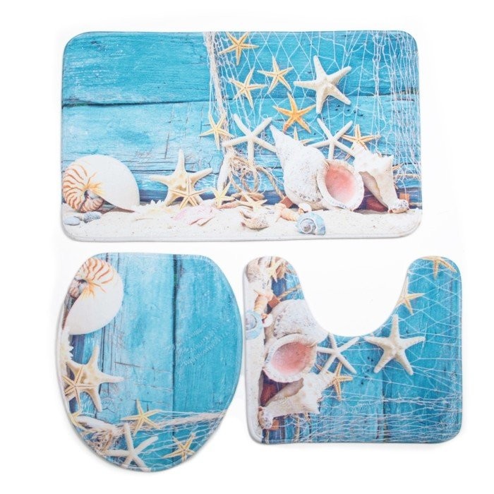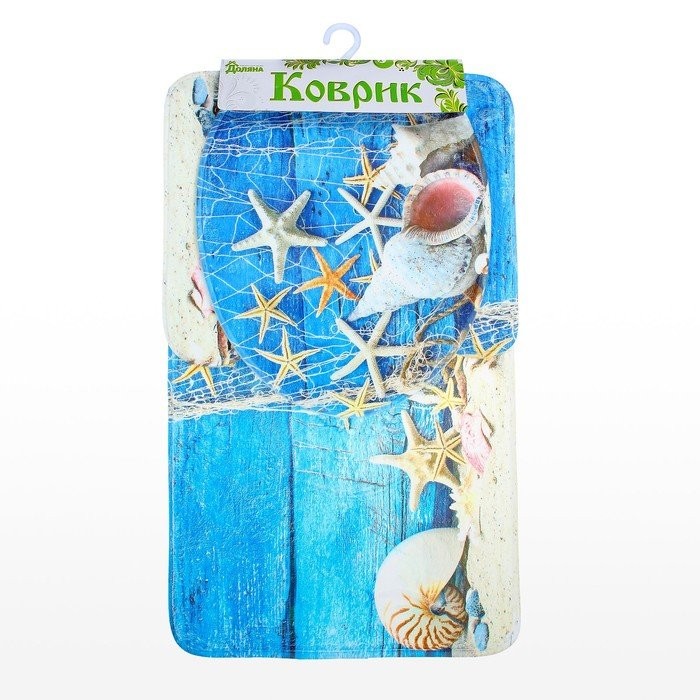 Набор ковриков для ванны и туалета Доляна «Ракушки», 3 шт: 37×45, 37×45, 45×75 см