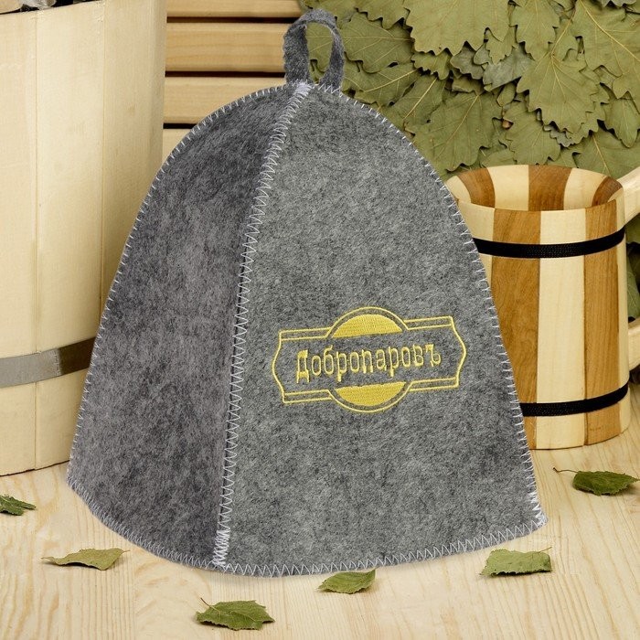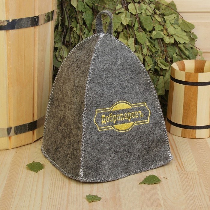 Шапка для бани классическая, серая с золотой вышивкой «ДОБРОПАРОВЪ»