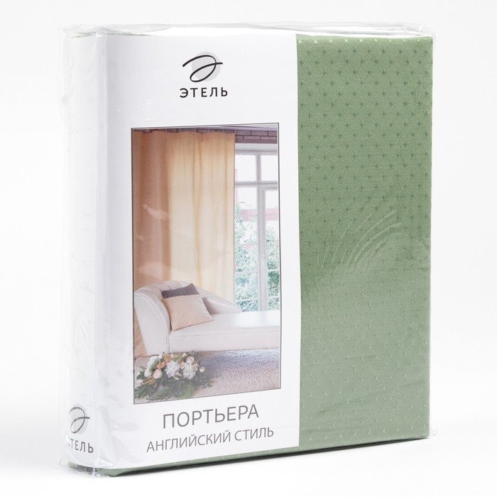 Штора портьерная «Этель» 130×280 см, Английский стиль SAGE светло-зелёный,100% п/э
