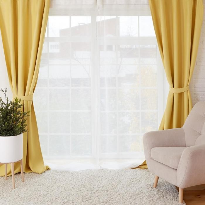 Штора портьерная Этель 135×250, цвет жёлтый, блэкаут, 100% п/э