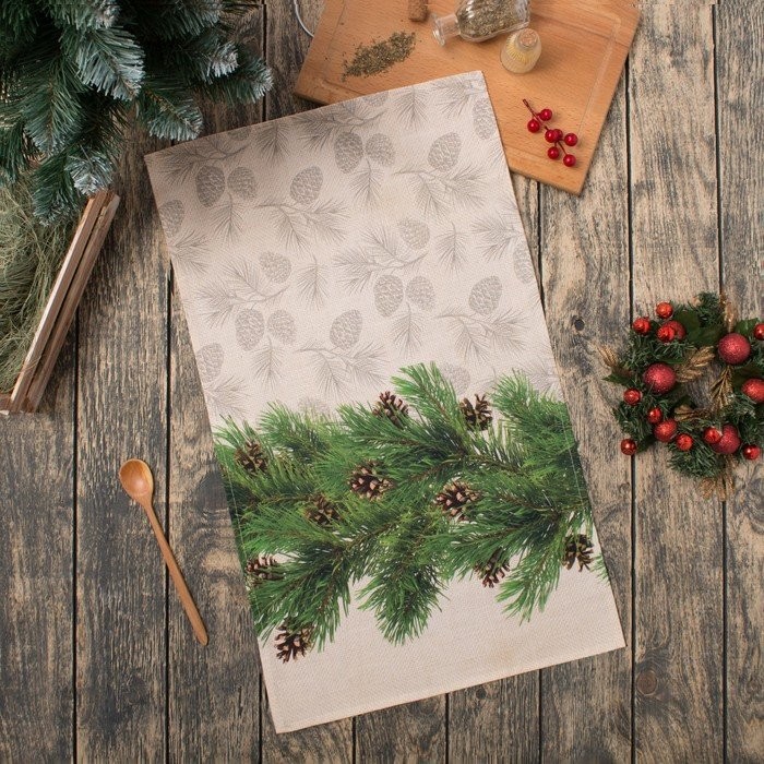 Полотенце «Этель» Еловые ветви 40×67 см, 100% хл, саржа 190 гр/м2