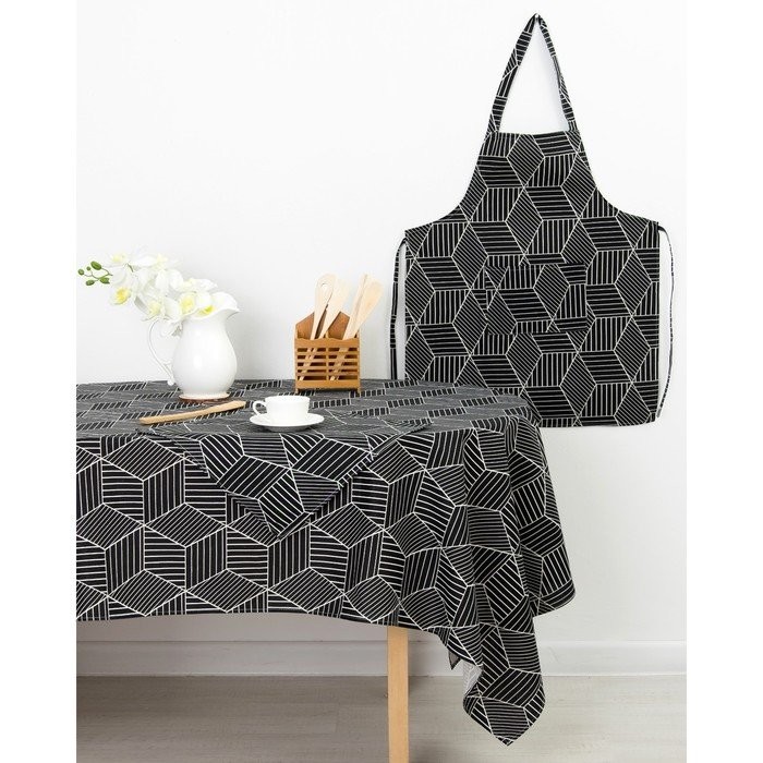 Фартук Доляна 60х70см, Тренд черн, 100%пэ, рогожка 200 гр/м