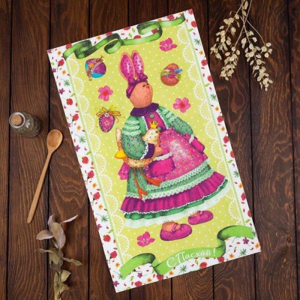 Полотенце пасхальное Доляна «Пасхальный зайчик» 35×60±2 см, 100% хл, рогожка 162г/м2