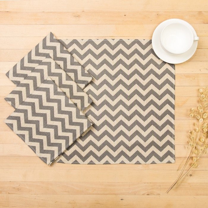 Набор салфеток Доляна 40х40см 4шт, Зигзаг сер, 100%пэ, рогожка 200 гр/м