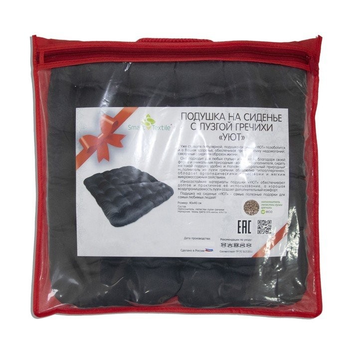 Подушка на стул Уют серый 40х40см лузга гречихи, грета хл35%, пэ65%