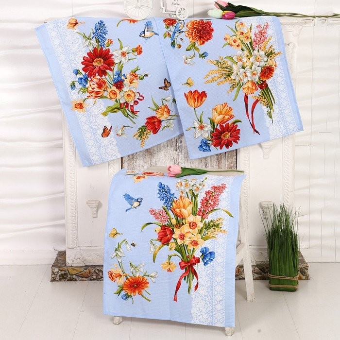 Набор полотенец в коробке Цветы для любимых 45×60 см, 3 шт, голубой, вафля, 170 гр/м2, хлопок 100%