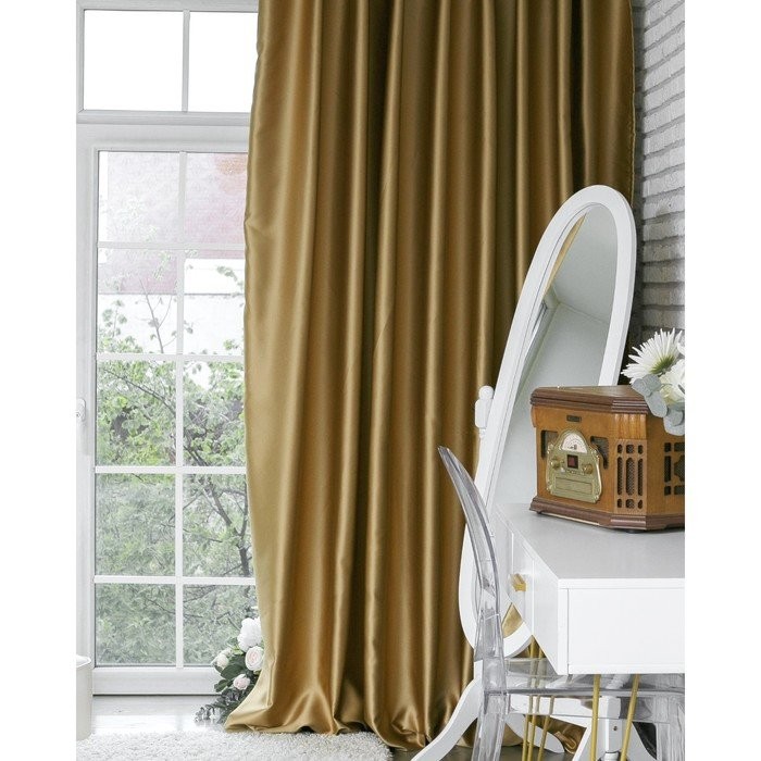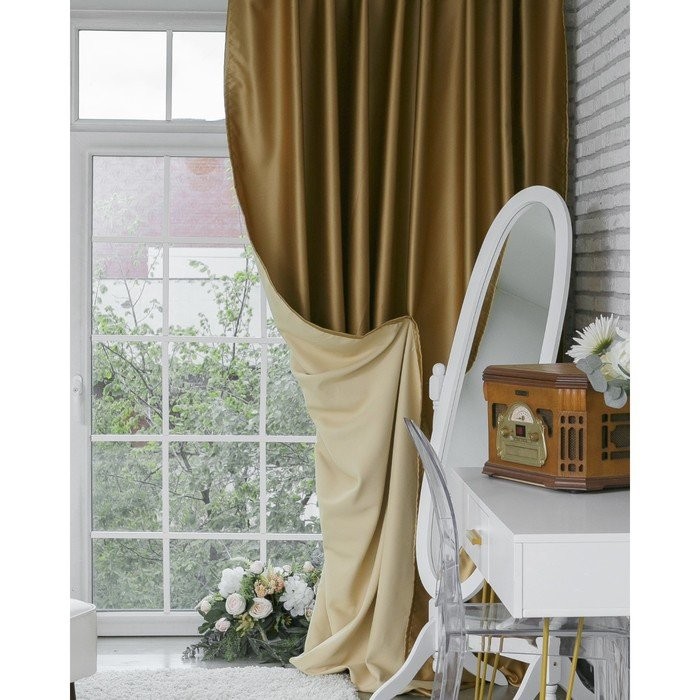 Штора портьерная «Этель» 130×300 см, двусторонний блэкаут, цвет Золотой, пл. 240 г/м², 100% п/э