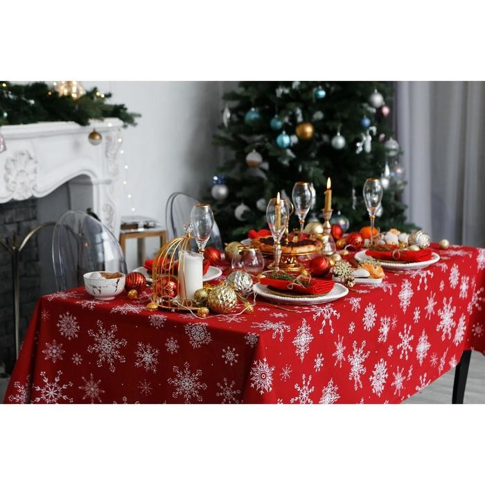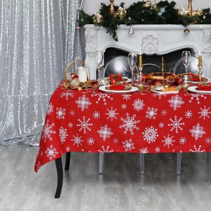 Скатерть Доляна «Новый год: Белые снежинки» 110×149 см, 100% хлопок, 164 г/м2