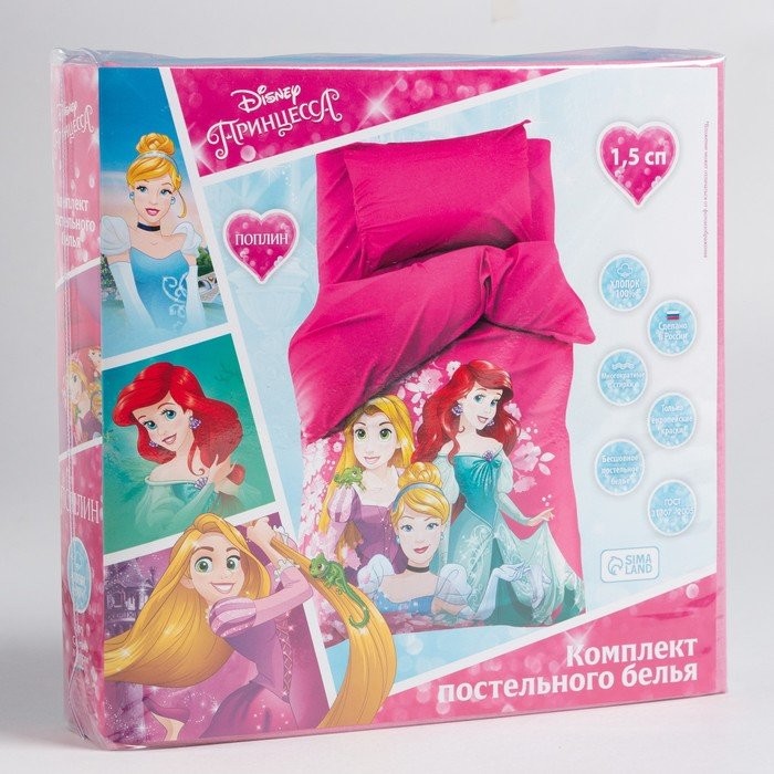 Постельное бельё 1,5 сп «Принцессы» 143×215 см, 150×214 см, 50×70 см -1 шт., поплин 125 г/м2
