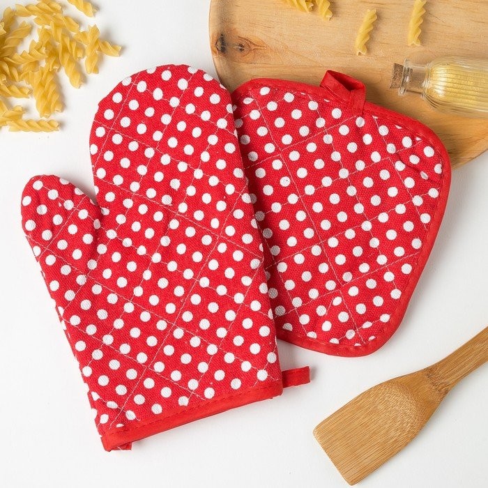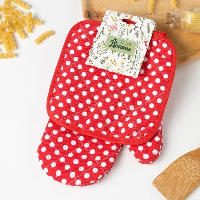 Кух. набор 2 пр. Доляна"Горох»,прихватка 17×17 см, рукавица 26×16 см,100% п/э