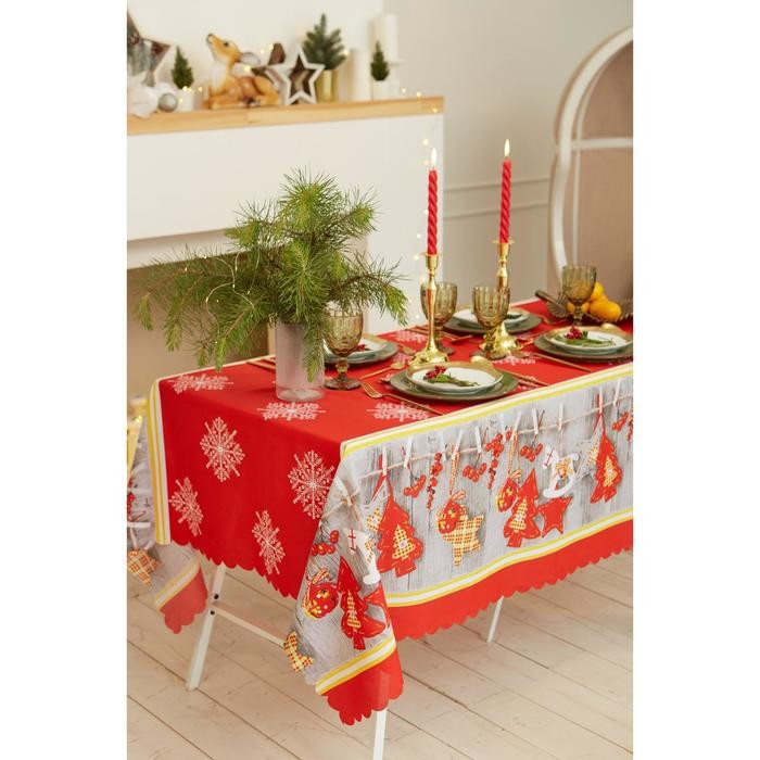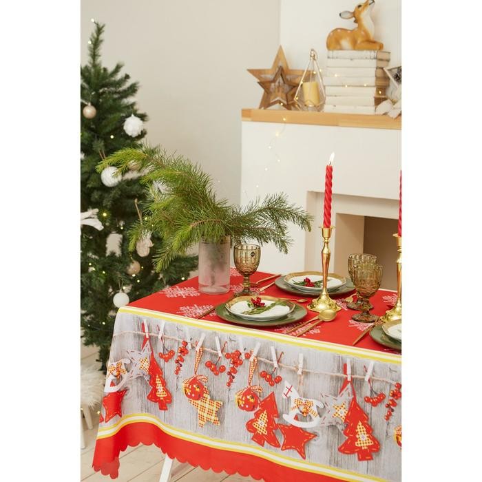 Скатерть Доляна «Новый год: Домашний уют» 145×220 см, 100% п/э