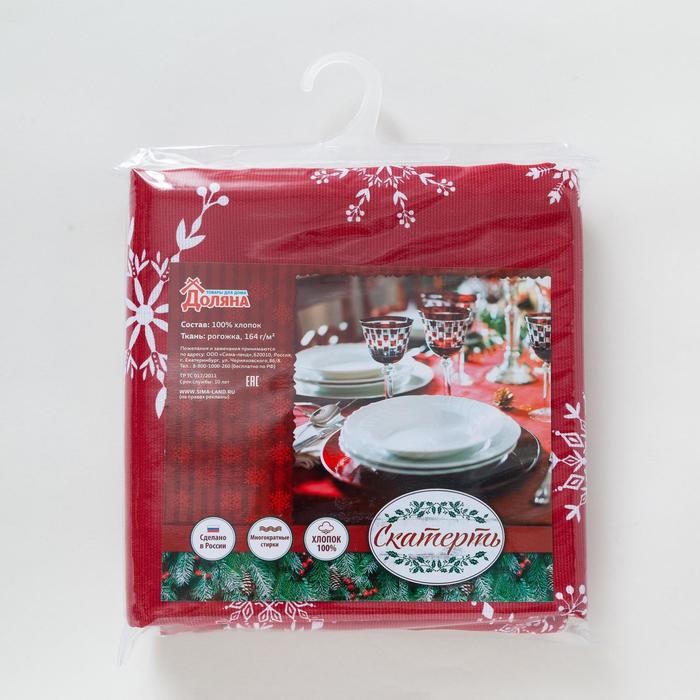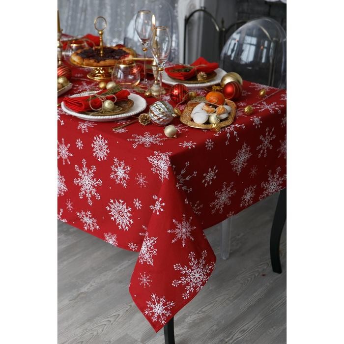 Скатерть Доляна «Новый год: Белые снежинки» 220×149 см, 100% хлопок, 164 г/м2