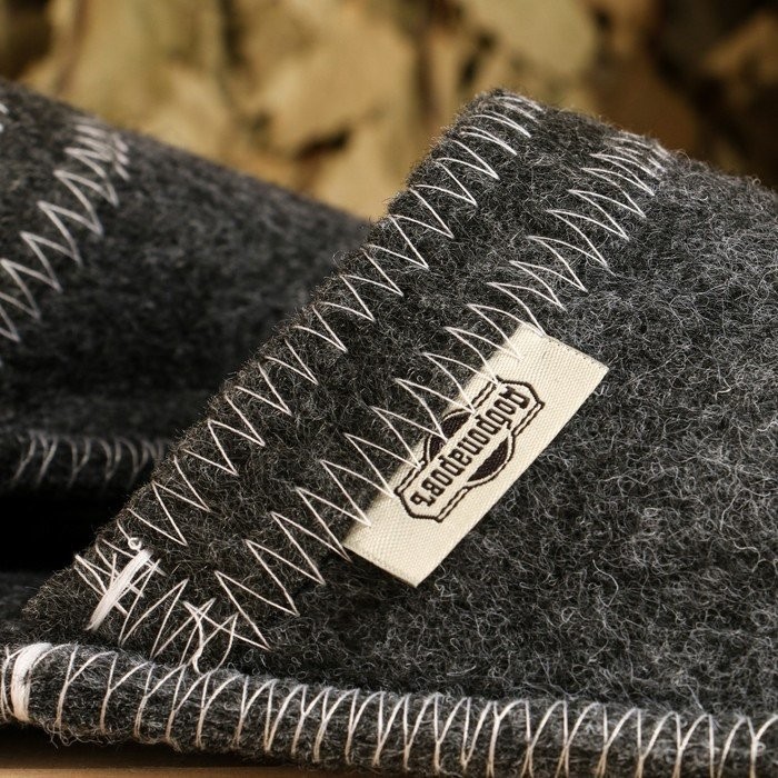 Тапочки из войлока и коврик впитывают влагу и сохраняют сухость, что обеспечивает комфорт во время посещения парной.