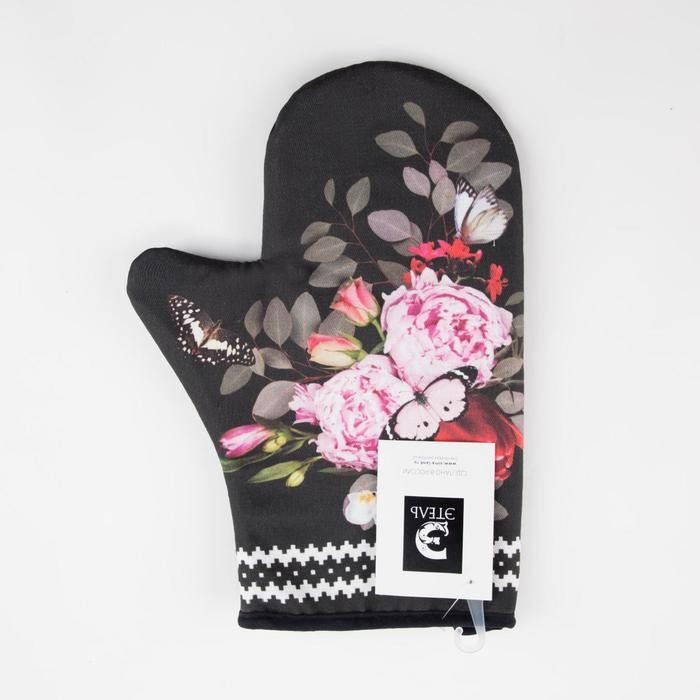 Варежка-прихватка «Flowers» 20х28см, саржа, 100% х/л, ватин 250г/м2