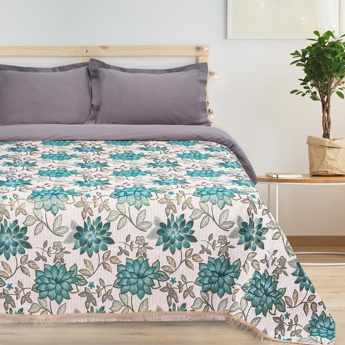 Покрывало гобеленовое Этель «Роскошь» с бахромой, бирюзовый, 140х200см, п/э 80%, хл 20% (450 г/м2)
